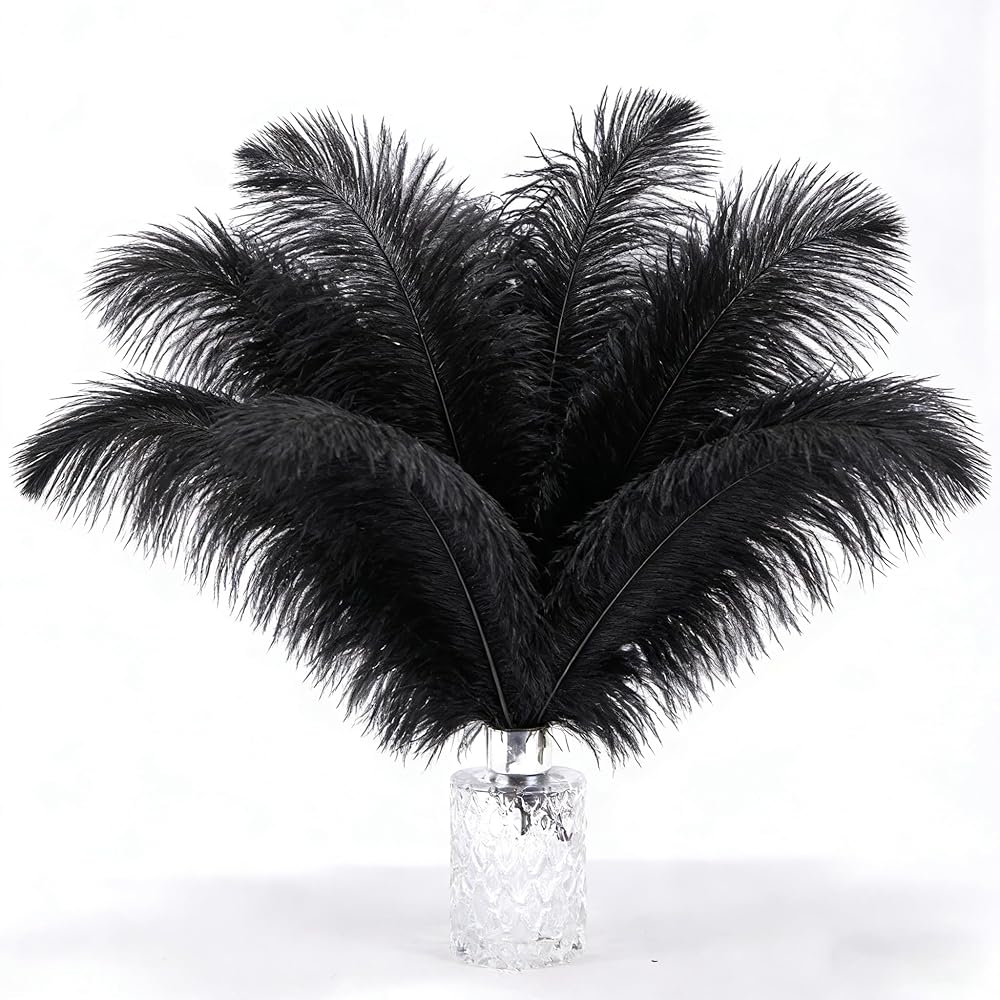 Ostrich Feathers 10-12 inch(25-30cm) Natural Bulk 10pcs Black Feathers for Crafting Vase Wedding Party Home Christmas Day Decoration (Black, 10-12 inch)