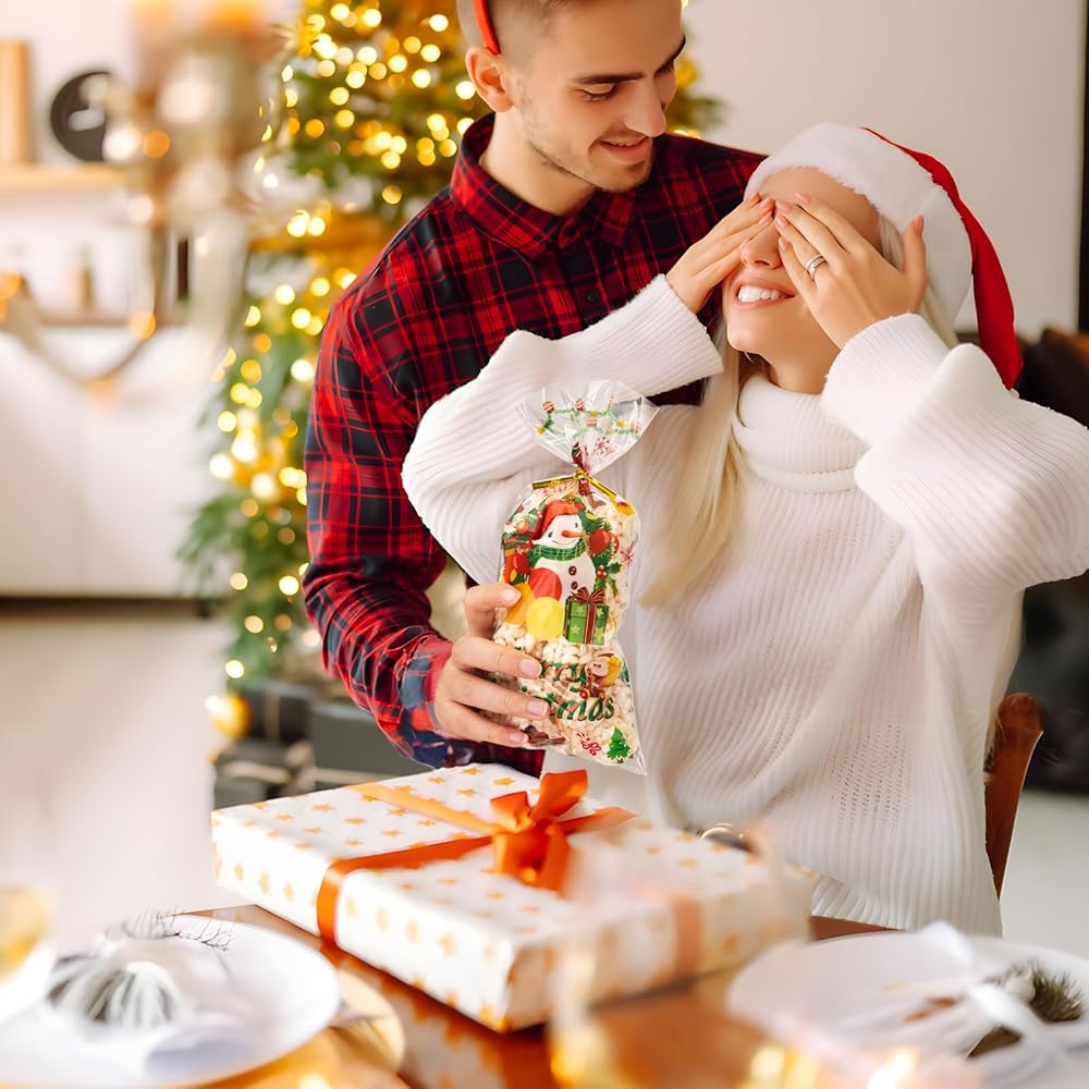 Muti-Functional Use: These clear Christmas cookie bags are designed to be spacious and easily hold lollipops, cookies, chocolates, nuts, snacks, prizes, gifts and more. Ideal for Xmas party supplies and decoration