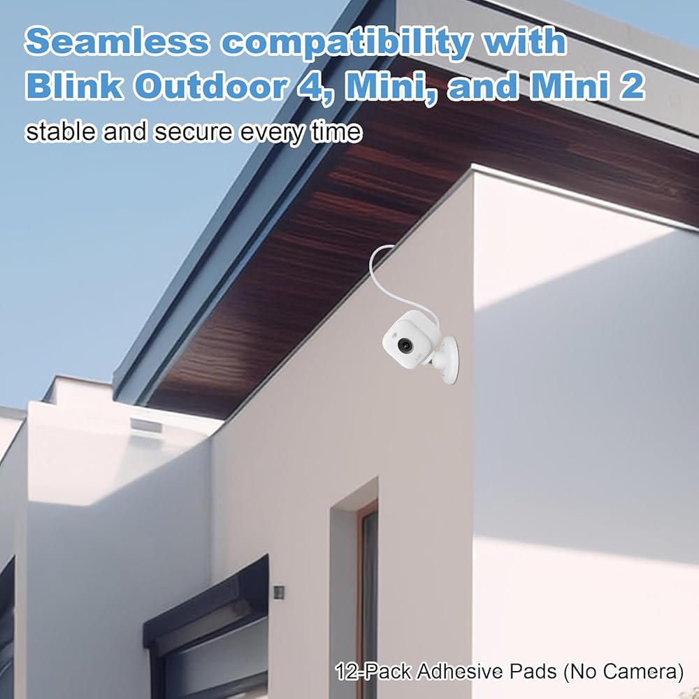 Durable double-sided adhesive pads for Blink cameras and most round-base security cameras. Easy tool-free installation on smooth surfaces. Pack of 12 for convenience.