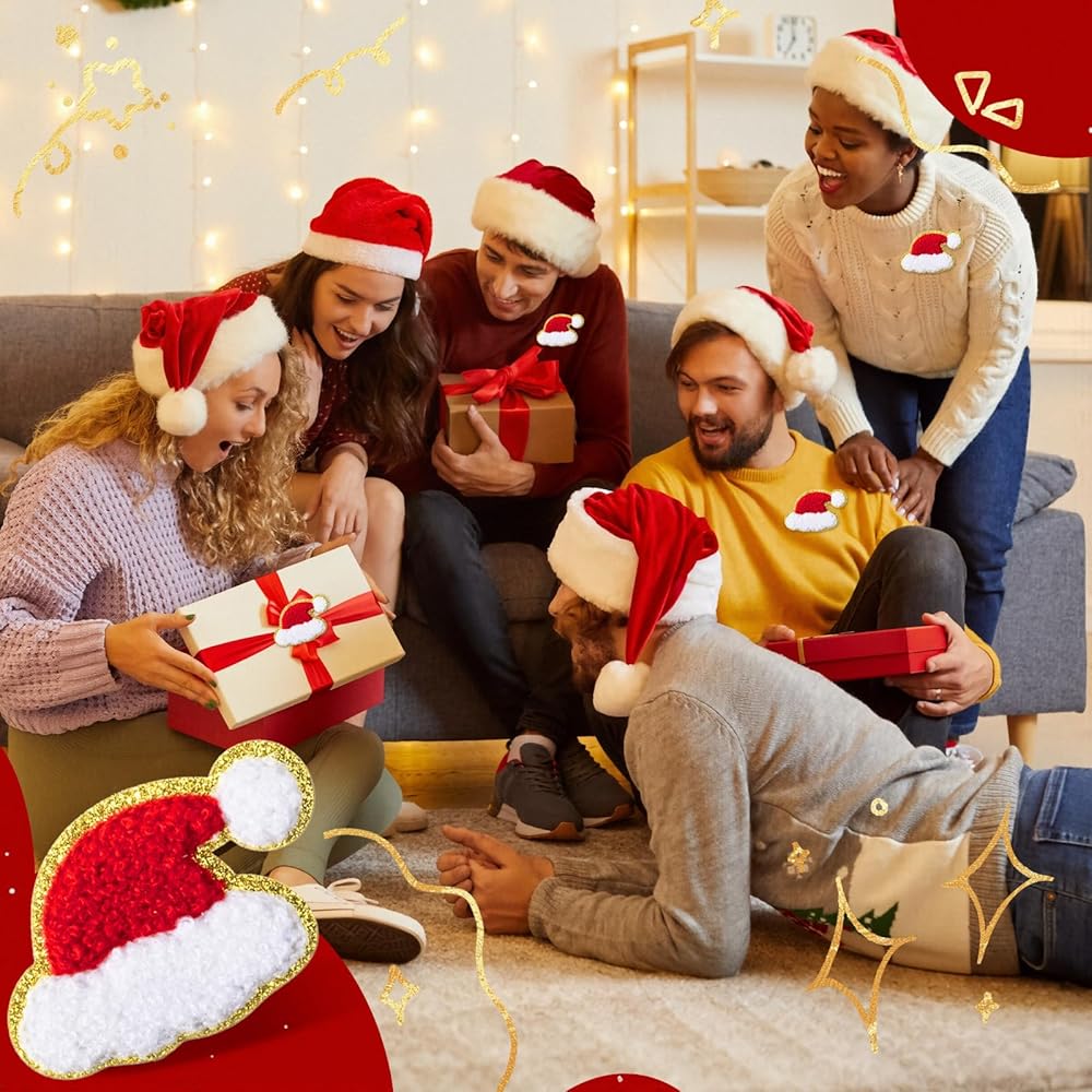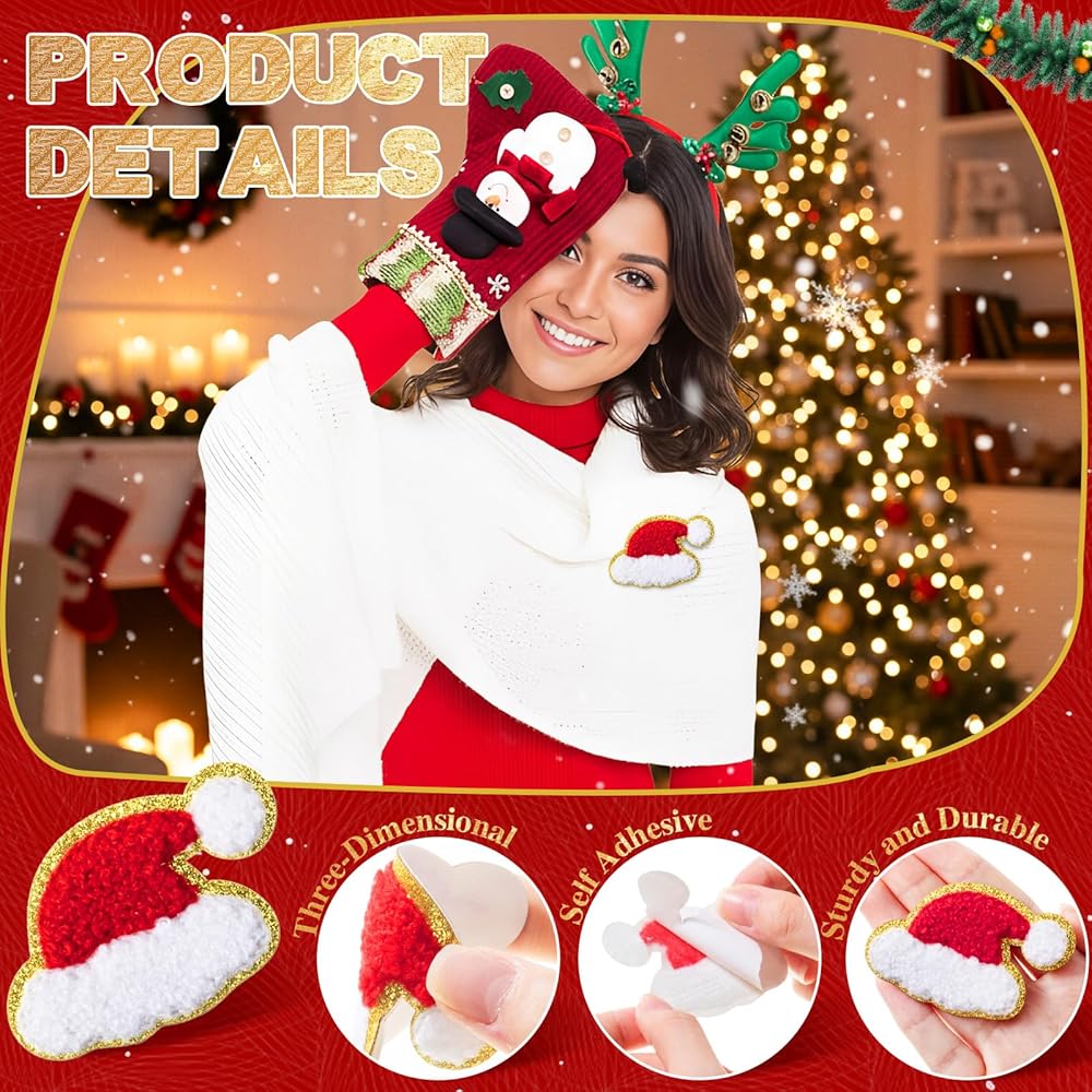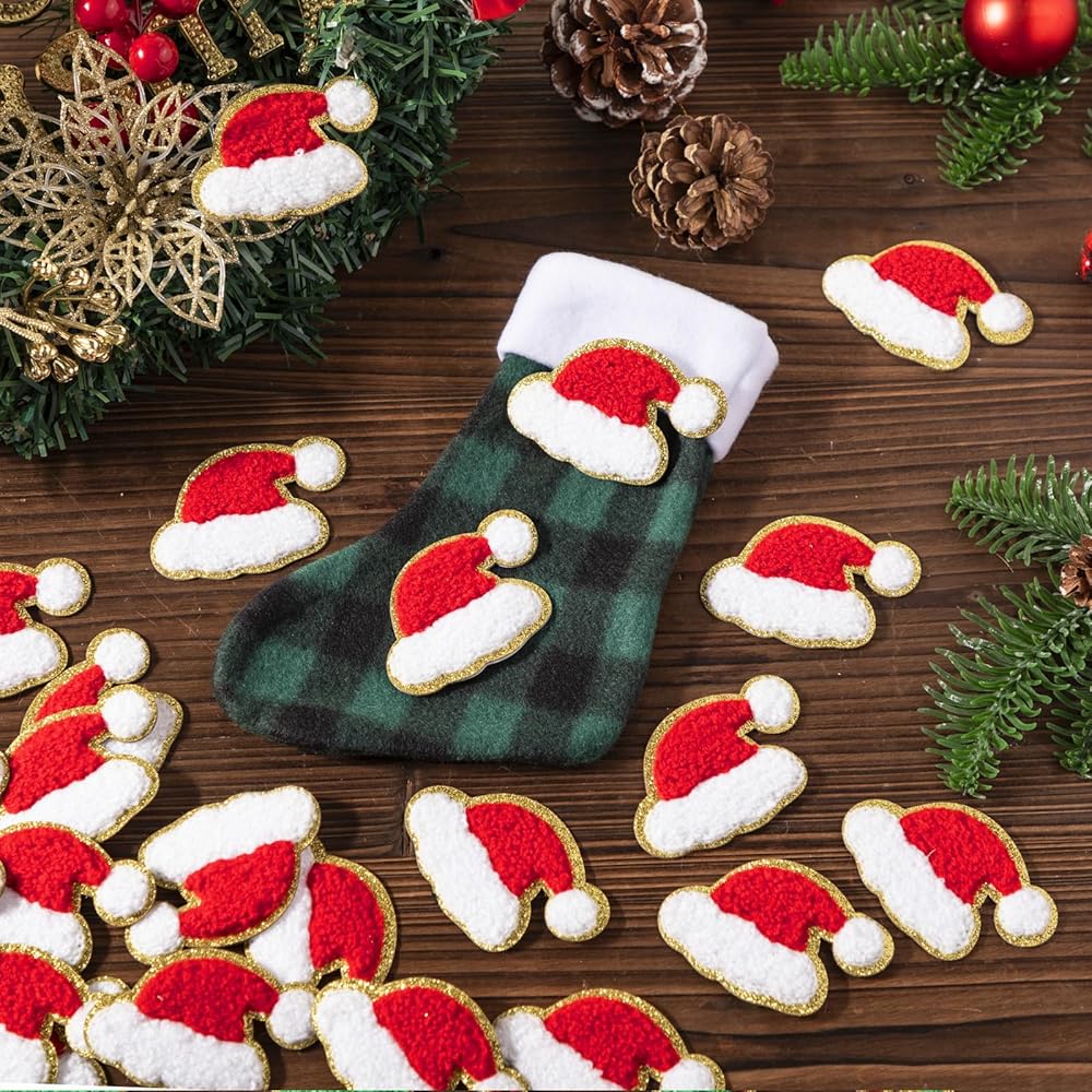 These patches feature a Christmas hat pattern design, with golden edges shining brightly under the light. You can choose the appropriate patch to match your clothes, hat, pants, or bag, making you stand out.