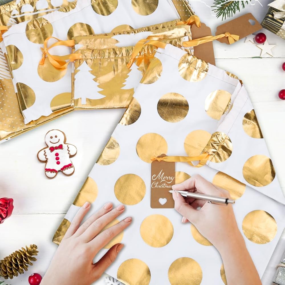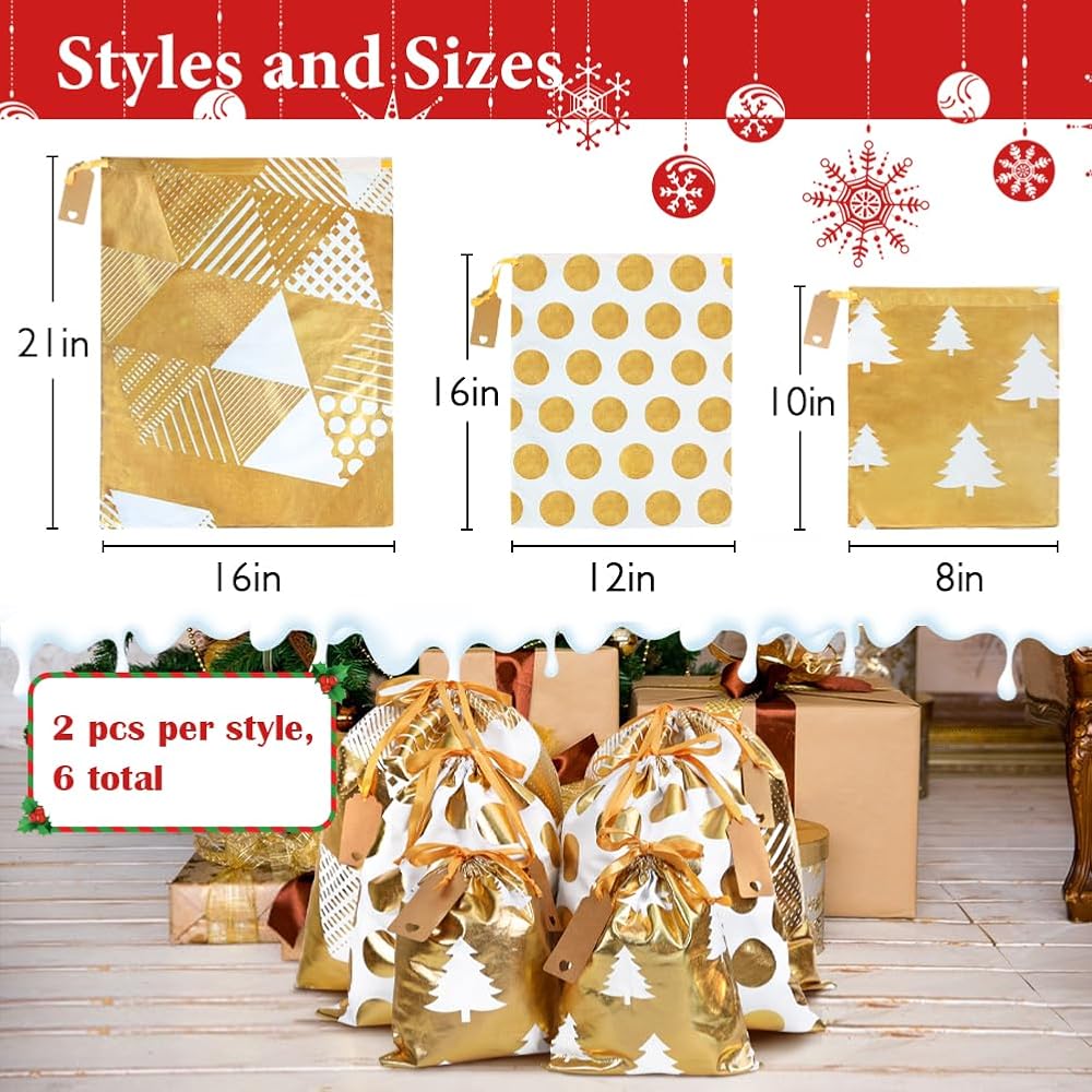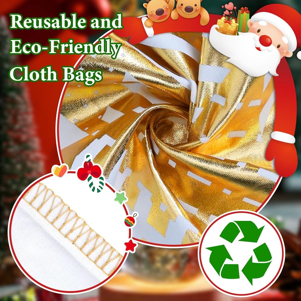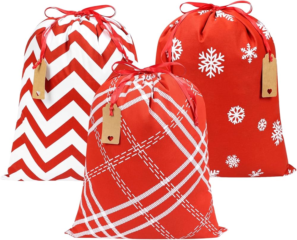 JOINDO 3pcs Christmas gift bags, Medium Size (16 x 20 inches), Drawstring Design, 3 Patterns, 100% Cotton