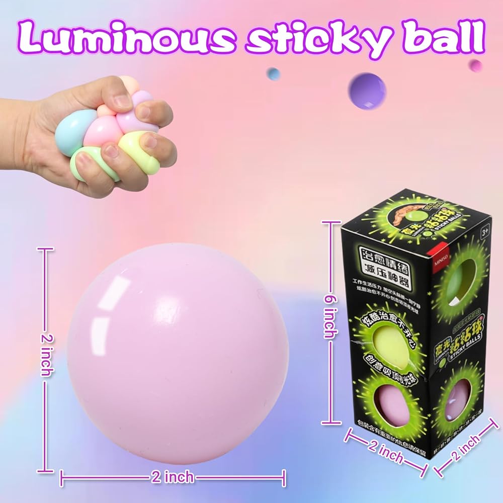 3pcs 2.4in Lumi Balls,Dream Balls,Glow in The Dark Sticky Ball That Stick to The Ceiling,Elevated Stress Balls for Kids and Adults,Stocking Stuffers,ASMR Cool Stuff for Teens