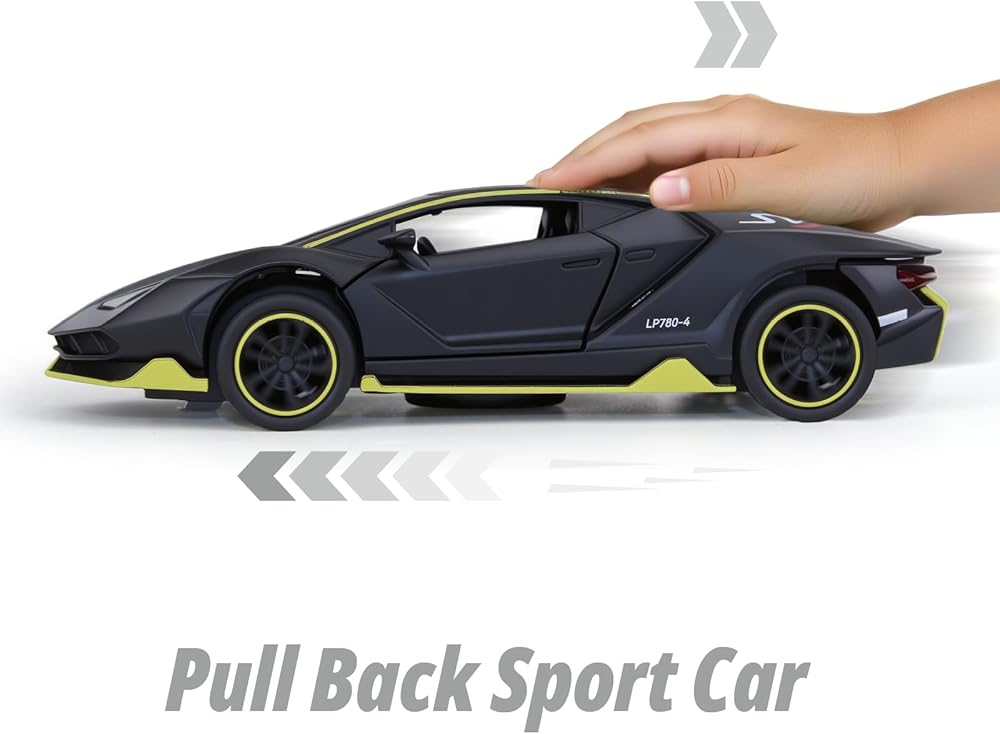 SASBSC Lamb SVJ Toy Cars for Boys Age 3-12 1/36 Small Diecast Metal Model Car Toys with Light and Sound Pull Back Sport Car for 3+ Years Old Kids Birthday (Black)