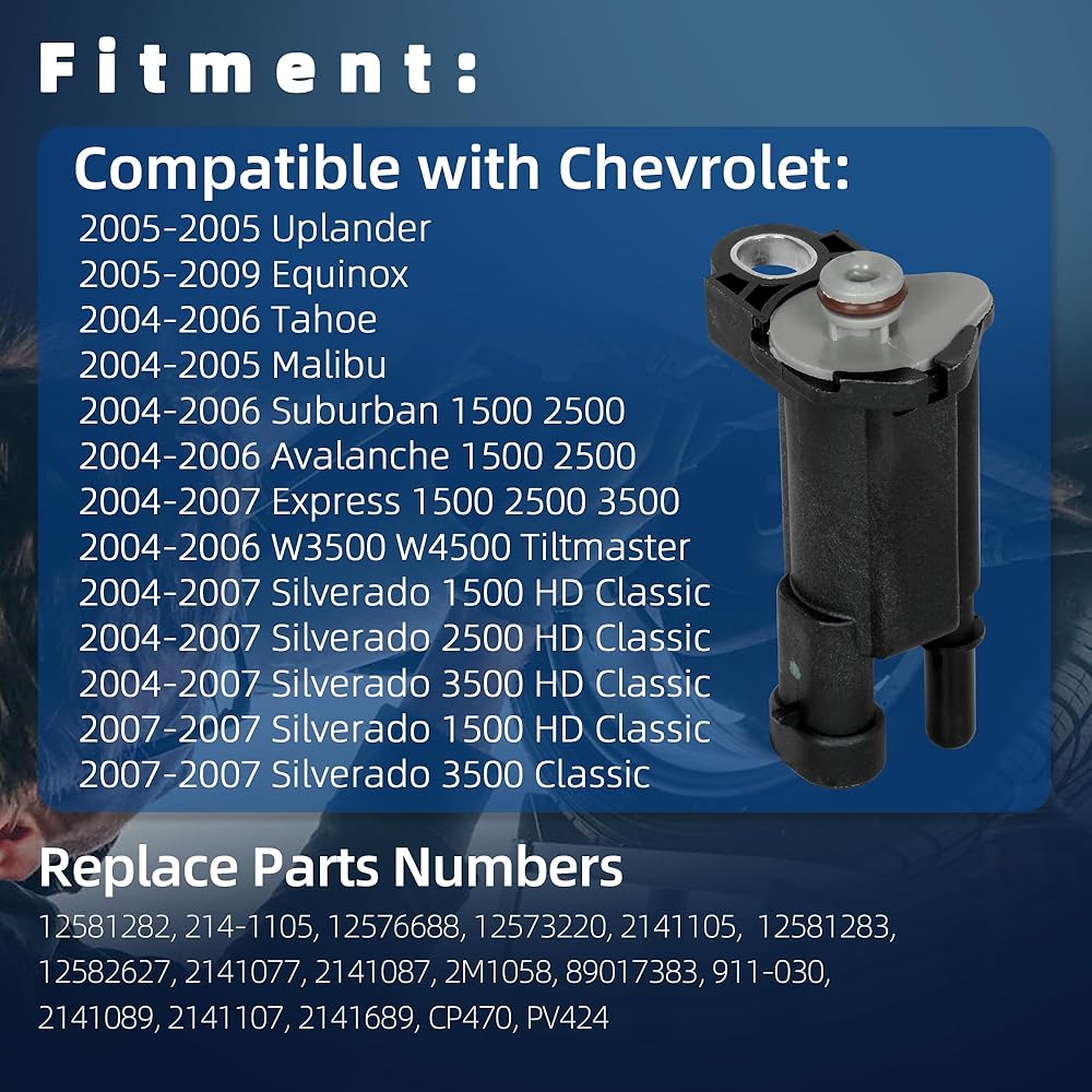 Vapor Canister Purge Valve Solenoid 12581282 EVAP Vapor Canister Vent Valve Compatible with Chevrolet Avalanche Silverado Express GMC Sierra Yukon Cadillac STS Replace OE 214-1105 12573220