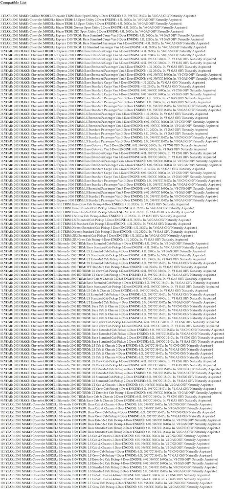 This E.C.M. fits the following vehicles: 2003 4.3L Chevrolet Astro.