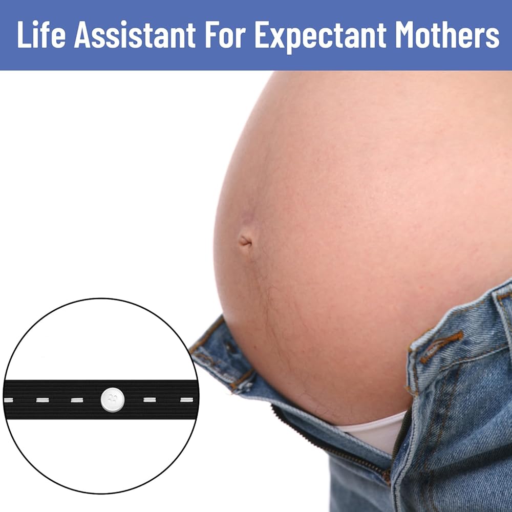 Waistband Tightener Design: Features a durable elastic band and clear buttons that securely tighten the waist of your pants; The design ensures a snug fit without compromising comfort, ideal for jeans and other pants