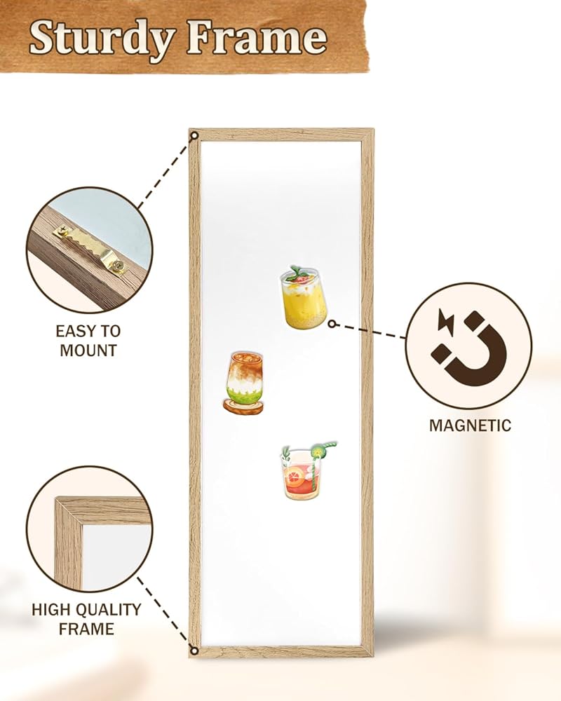 Beautiful and practical, with a magnetic surface: This chalkboard comes with a sturdy wooden frame that can withstand daily use. The high-quality magnetic chalkboard surface is very durable, leaving no stains or ghosting, and easy to erase. With its magnetic surface, you can easily place notes, magnets, photos, or notifications in the same place