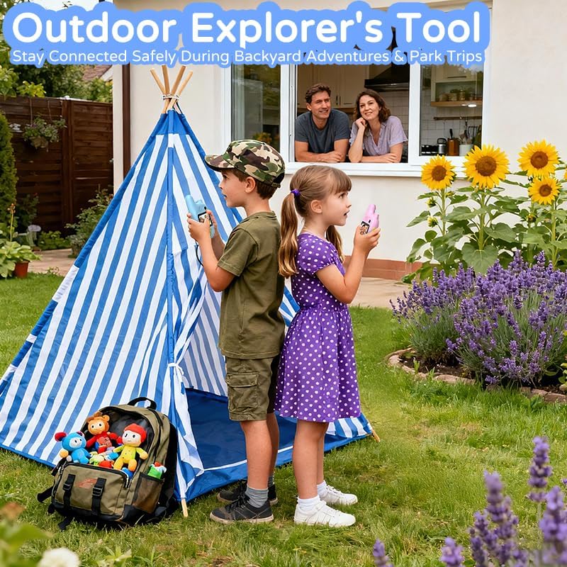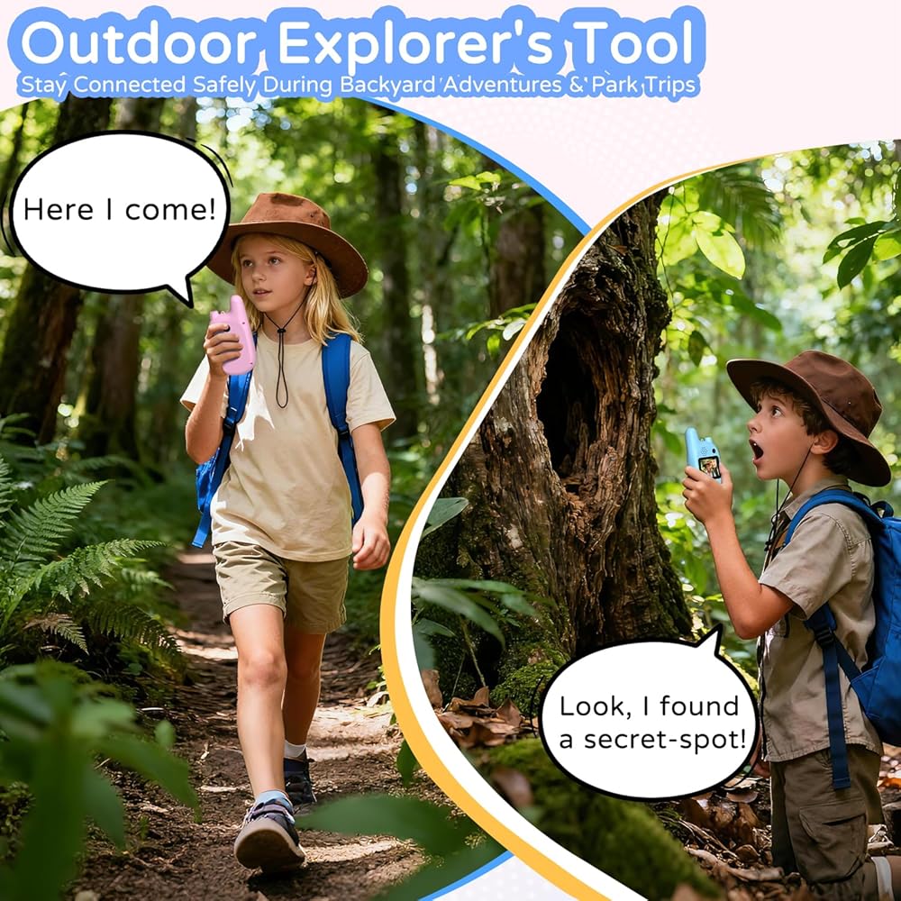【Worry-Free by Design, Built for Kid-Sized Adventures】:Keep the fun going without the worry! These walkie talkies for kids are safely confined to our dedicated chat and call network—no internet access, no distractions. Plus, each set comes with two FREE neck lanyards, making it easy to wear and nearly impossible to lose during outdoor explorations. Durable and designed for little hands, it's the perfect tool to encourage independent play.