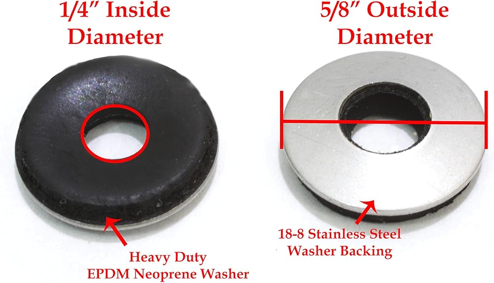 Bolt Dropper 1/4" x 5/8" Stainless Steel EPDM Bonded Sealing Washers (100 Pack), 1" OD Neoprene Backed Corrosion Resistant Load Distribution Water Tight Seal by Bolt Dropper