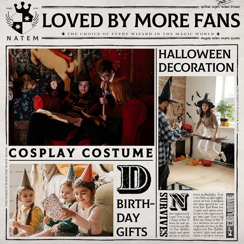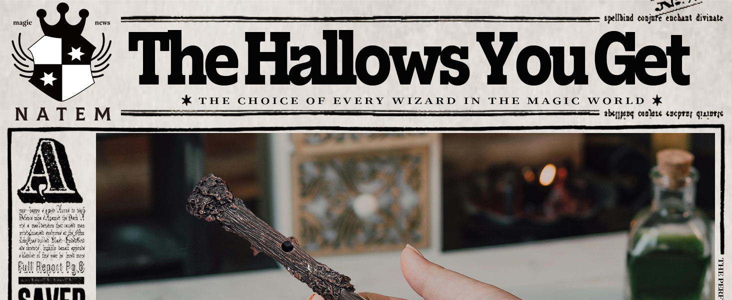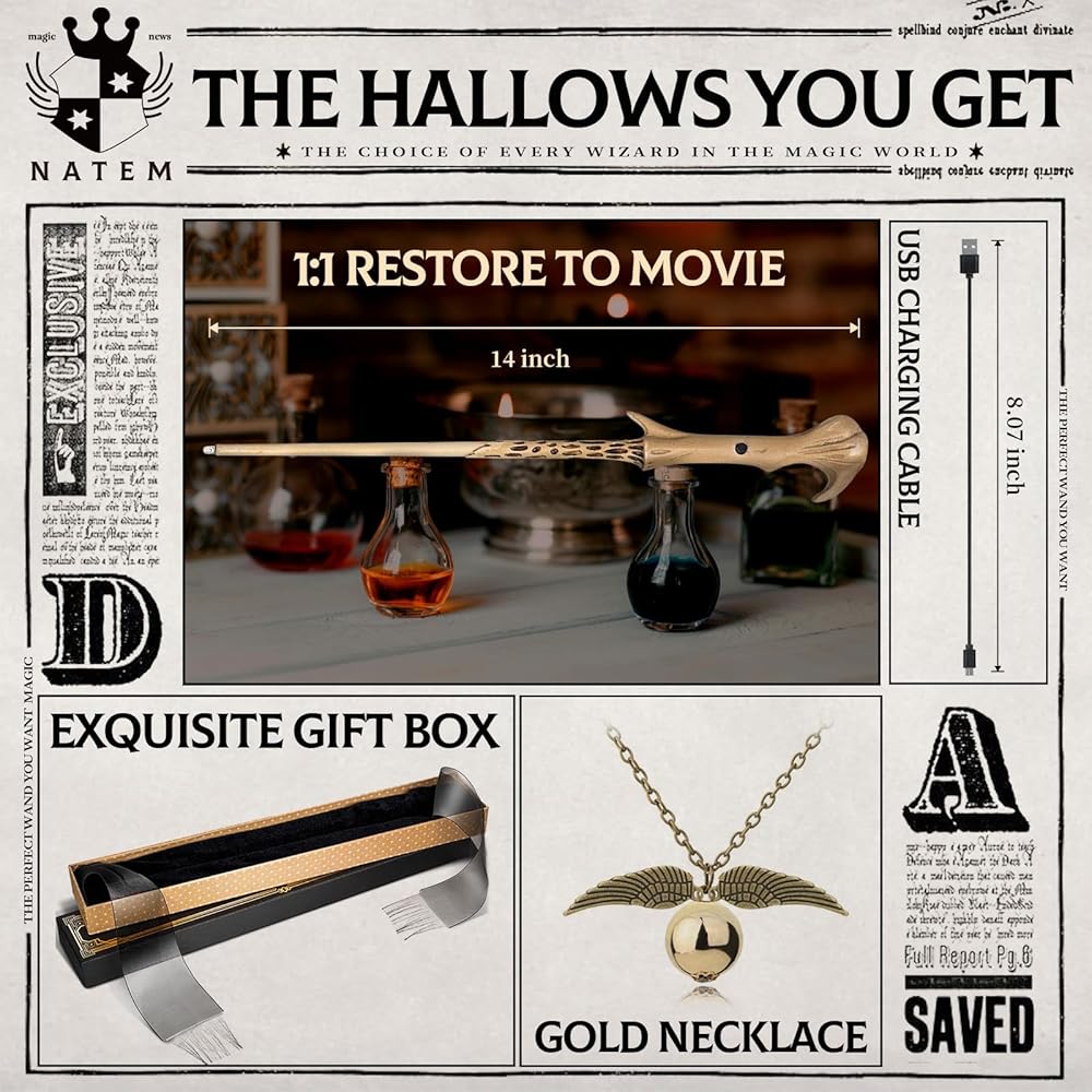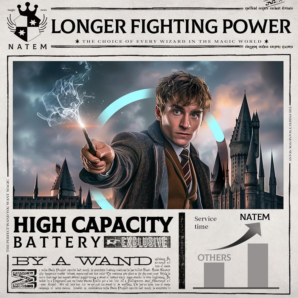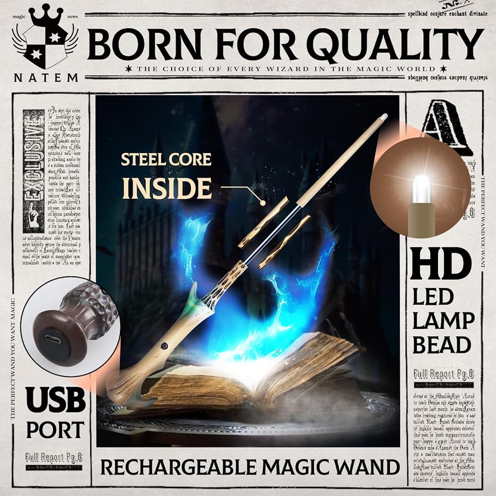 - HIGH QUALITY & ECO-FRIENDLY - The magic wand is carefully handmade from eco-friendly and sturdy steel core and high quality resin. Built-in high capacity battery and comes with a convenient charging cable, just charge it enough to make your wizard wand more powerful and long lasting.