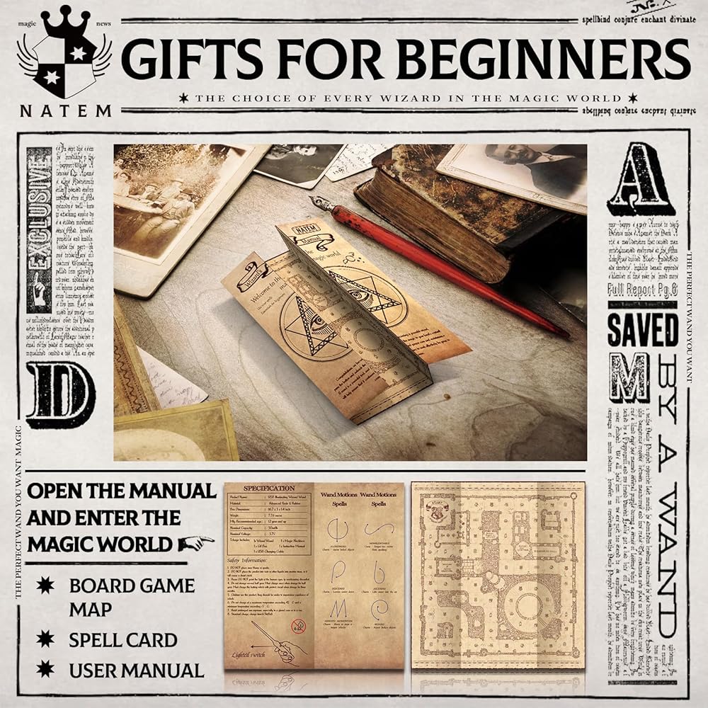 - START BECOMING A WIZARD - This rechargeable light up wizard wand is perfect for wizards who are learning. The beginner's guide included in the gift box can also be used to learn spells from your favourite wizarding world! If you dress up as a wizard for events such as parties, theatre or cosplay, this magic wand is sure to be the perfect accessory. Make you the star of the wizarding world.