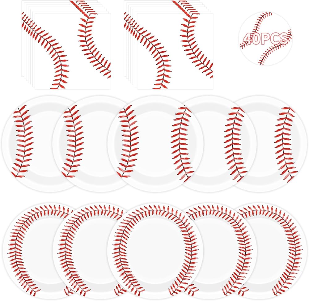 40 Pcs Baseball Plates and Napkins Sets - Baseball Party Supplies, Disposable Paper Dinner Plates and Napkin Tableware Kit for Sports Themed Baseballs Birthday Party Table Decorations, Serves 20