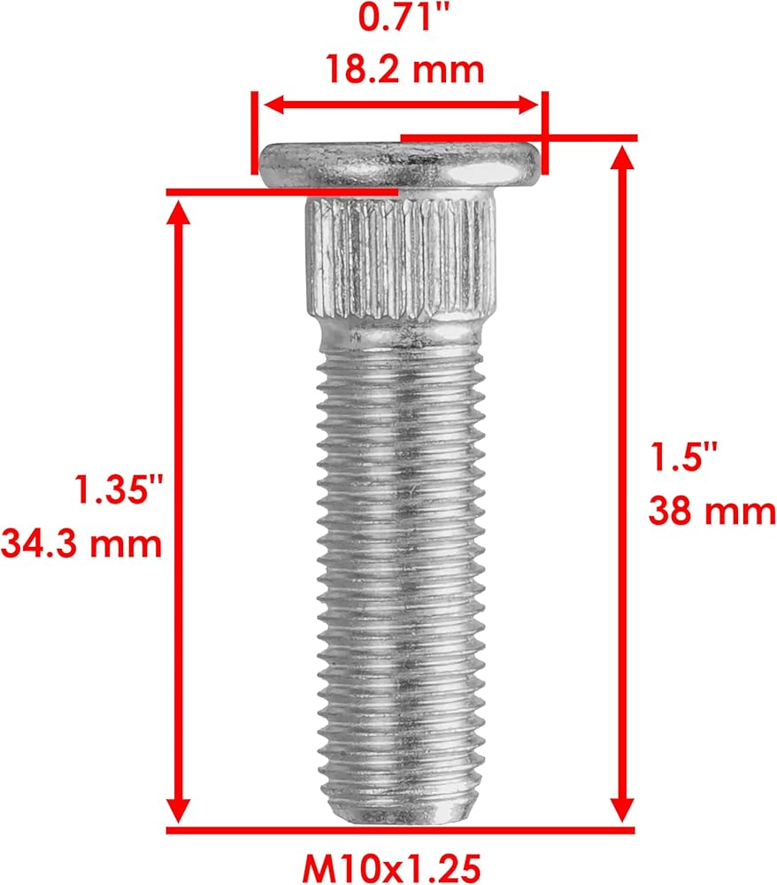 - Dimensions: Height: 38 mm - 1.5 in, Width: 18.2mm - 0.71 in, Thread Size: 10-1.25