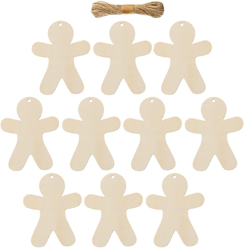 Value Pack: You will receive 40 wooden gingerbread man ornaments (3.9 x 4.7 inches each) and 4 rolls of hemp rope (total 19.7 feet)—perfect for all your Christmas decorating and crafting needs