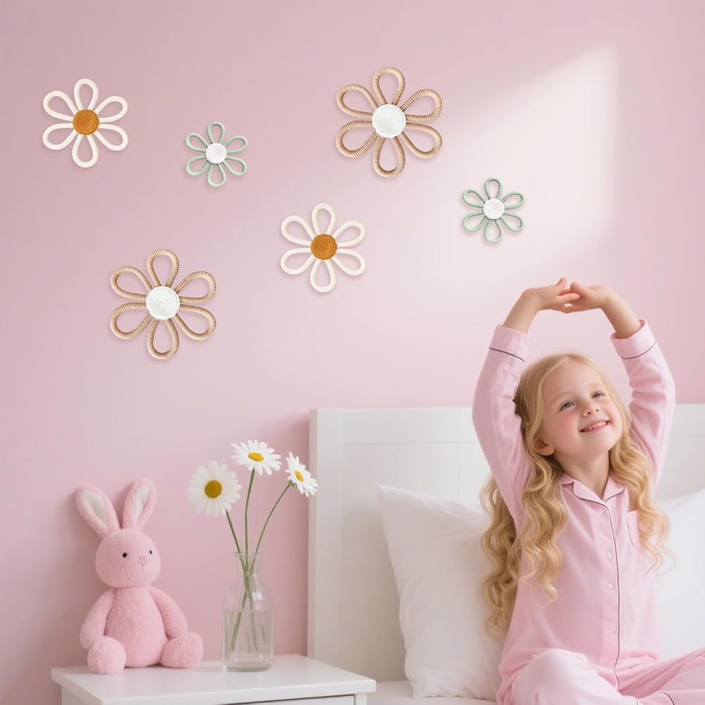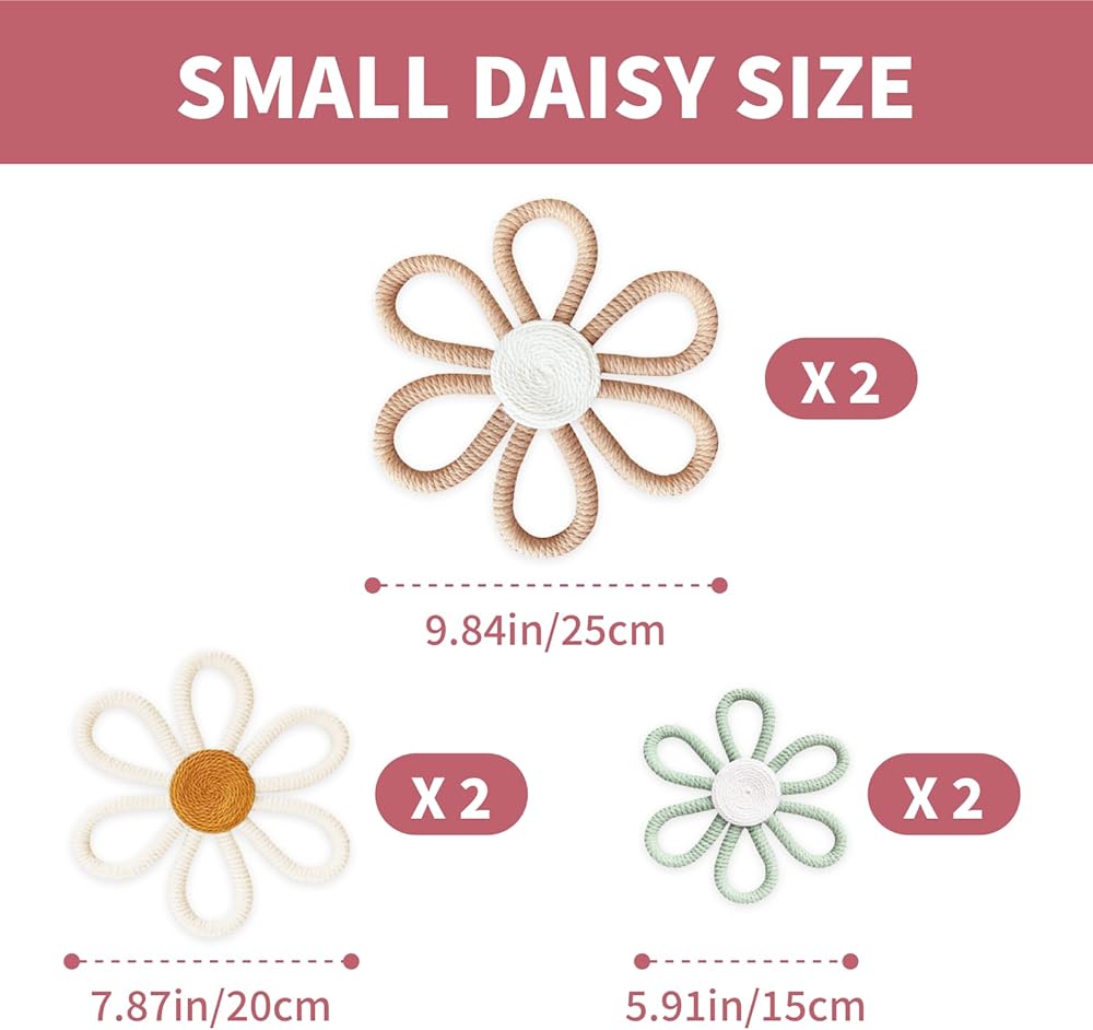 Bohemian Daisy Wall Decor: Includes 6 daisy-shaped wall decorations in 3 colors: light pink, white, and deep pink. Vibrant hues and charming designs add bohemian flair to your home.