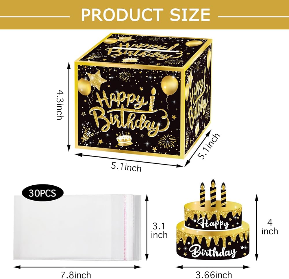 【Perfect Money Pull Box Design】 Money box measures 3.74" x 4.84" x 4.84" and is made of sturdy cardboard with themed graphics. The inside of the card has tape to secure the money roll. The plastic bags measure 3.6" x 7.8" (2.61" x 6.14" for dollars), and 30 of them are large enough to hold the dollar amount you want to customize. This is not only a surprise gift, but also an elegant way to give cash.