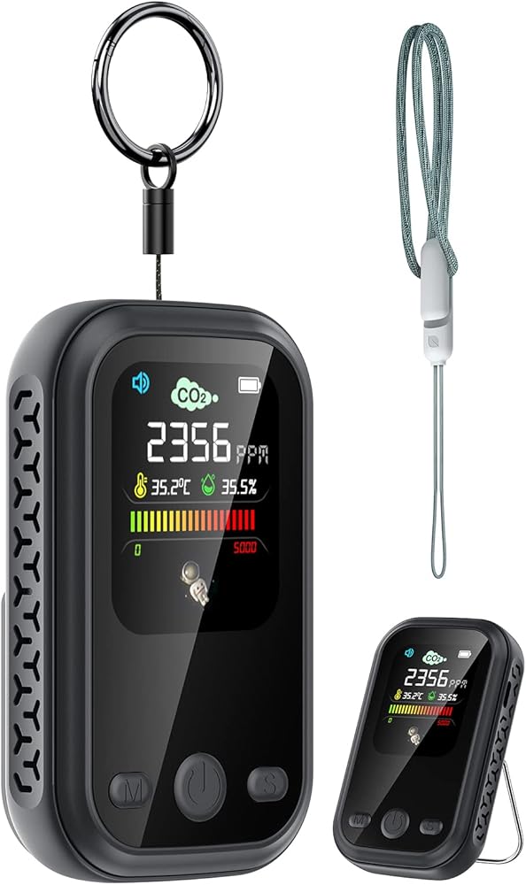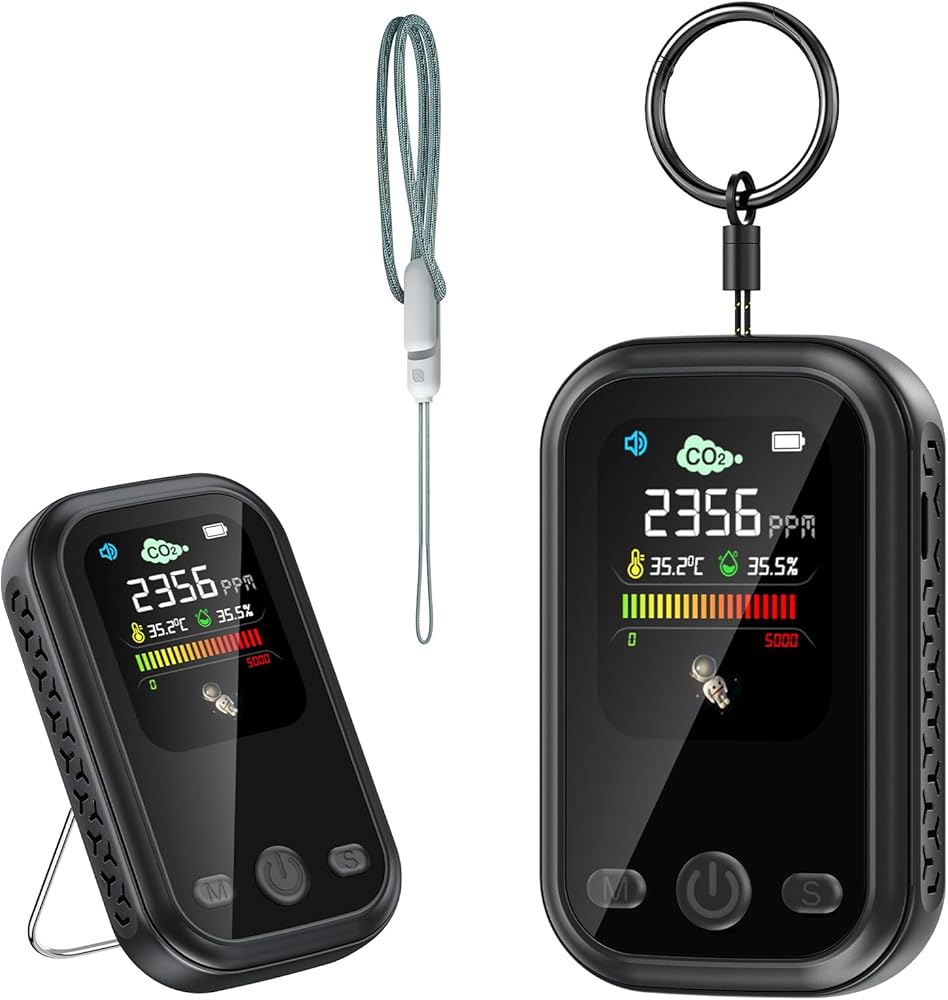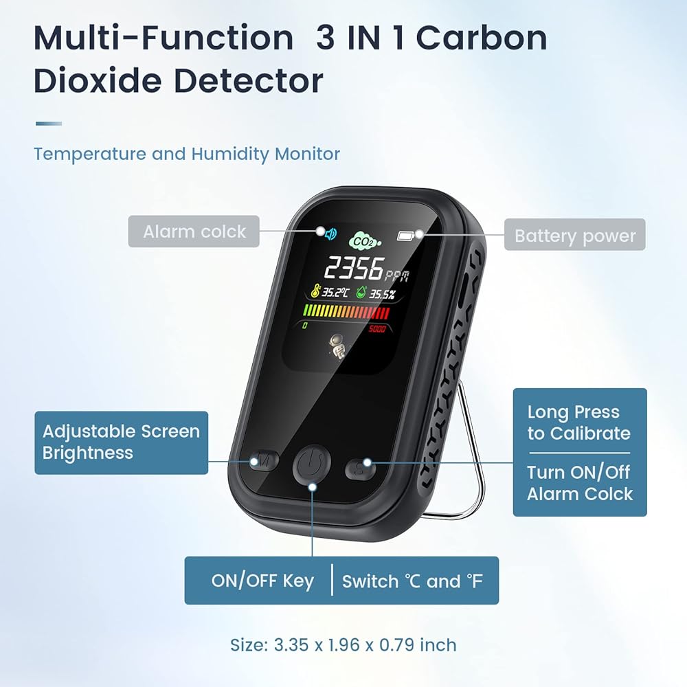 🧗♂️【3-in-1 Mini Portable CO2 Detector】The CO2 monitor uses NDIR technology to monitor indoor and outdoor CO2 concentration and designed with a rack on the back and 2 hooks to satisfy all your needs: indoor sleeping, travel, or on the go. If you need to move the monitor around frequently, you may want to consider a portable or handheld CO2 monitor that is easy to carry.