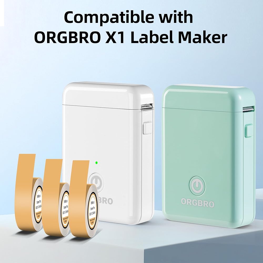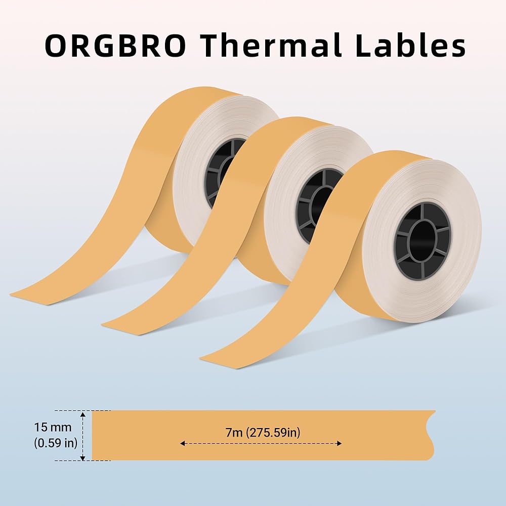 This item is 3 Rolls / Case & 7m Labels / Roll, Black on Orange 15mmx7m. Compatible with ORGBRO X1 portable label maker.