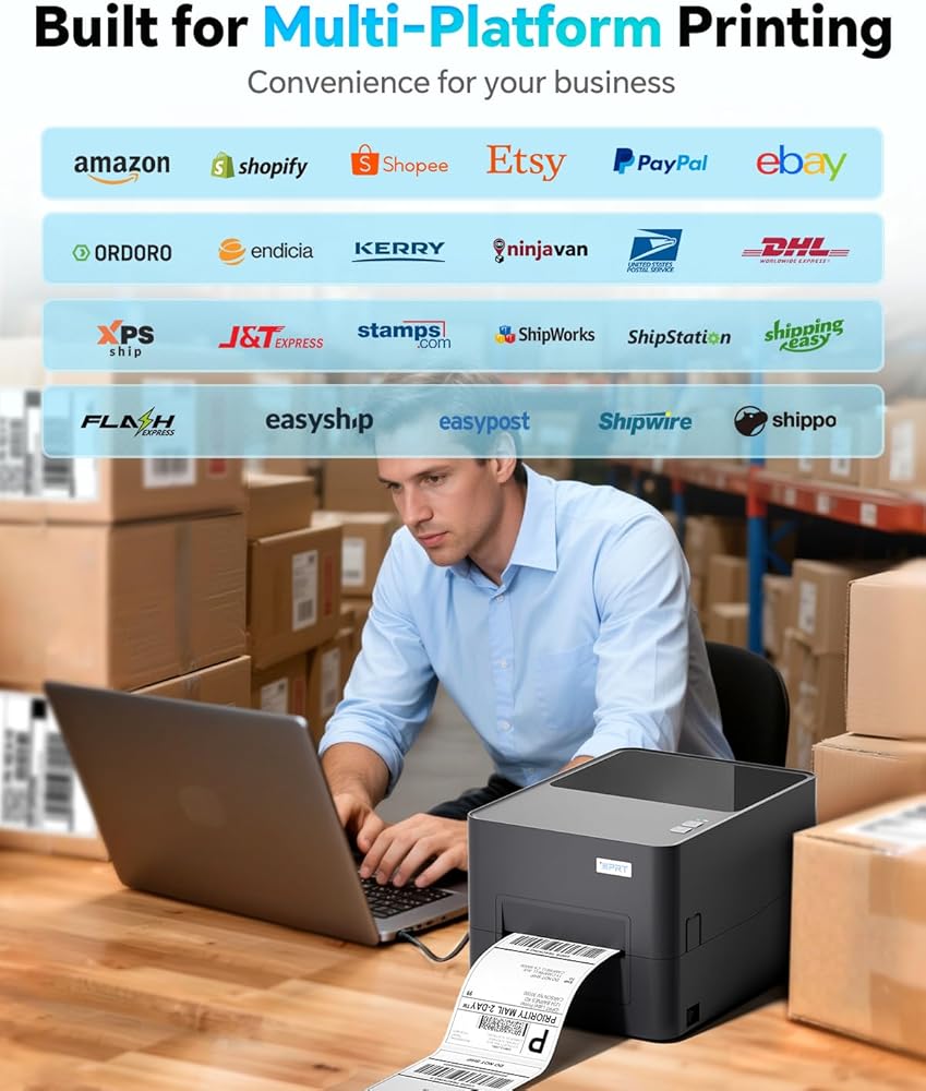 Fast, Stable & Multi-Interface Connectivity -The thermal desktop printer With 6 IPS high-speed printing and USB + Ethernet ports, this 4x6 thermal printer ensures fast data transmission and stable operation. Ideal for small and medium-sized businesses, it simplifies daily printing tasks—from shipping labels to product barcodes—boosting overall productivity and efficiency.