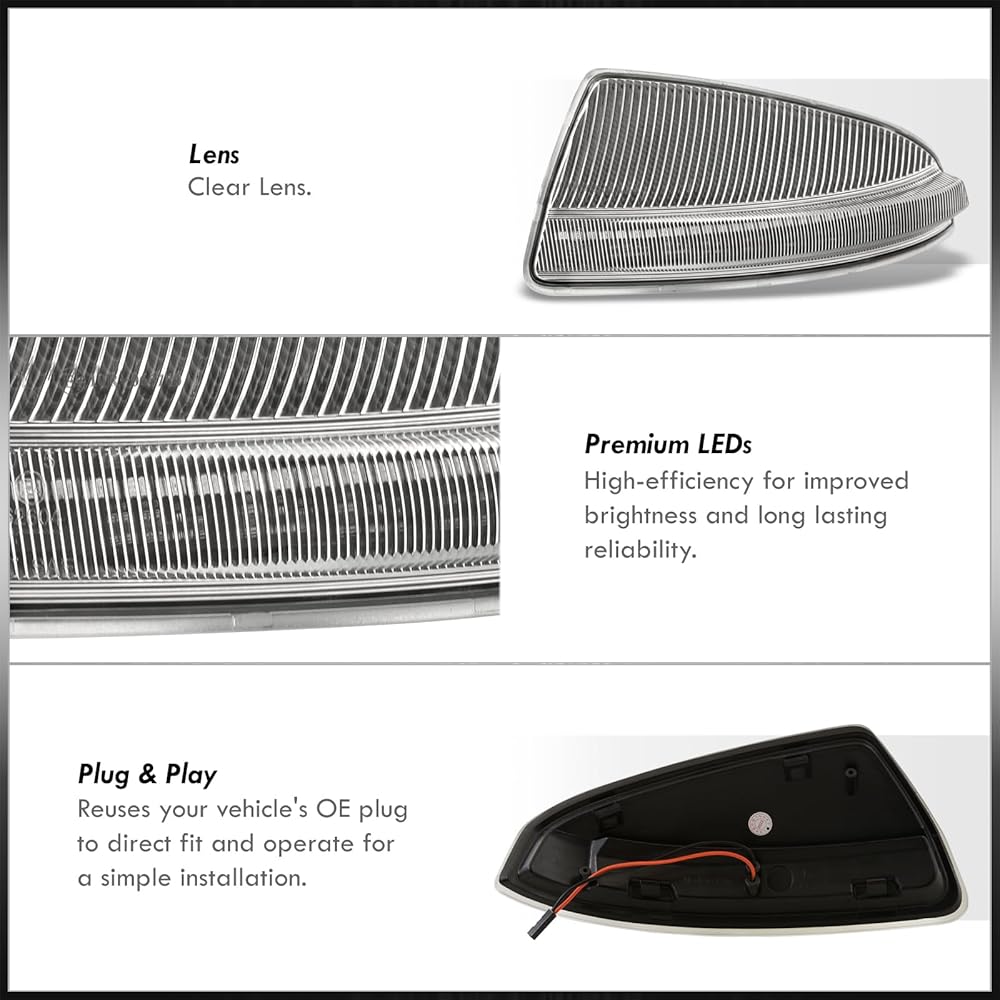 Direct replacement sequential LED side mirror signal lights.