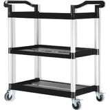 Perfect for restaurants, hotels, janitorial staff, caterers, and more, this cart with two shelves is a reliable way to transport a wide array of items. Whether you need to haul food pans to and from the buffet or hold plastic bus tubs to sort dirty flatware and china, this cart's two shelves give you the transportation ability that you need. The dual molded handles aid in pushing or pulling the unit from either side.