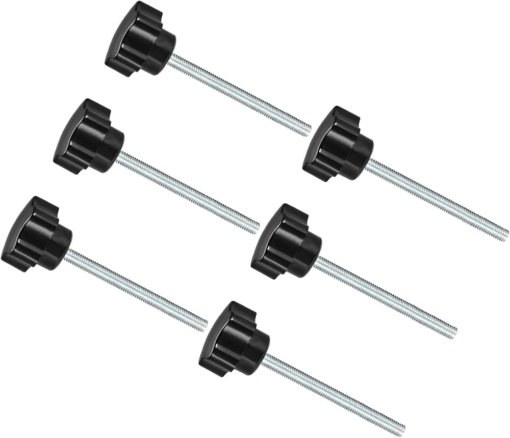 --- The unique star-shap plastic knobs offer an ergonomic and comfortable grip, even with gloves, wet or greasy hands. The clamping knob has a threaded stud that attaches to a mating component for quick and easy installation. The zinc plated metal bolt provides good oxidation and corrosion resistance, higher hardness, more wear resistance, and smooth surface. Made from thermoset plastic for long-lasting performance and wear resistance. The tightly-in plated steel metal insert hand screws allow adjustment without additional tools. The thumb screws provide an easy-to-use and reliable way to make optimal control for adjusting and tightening components.