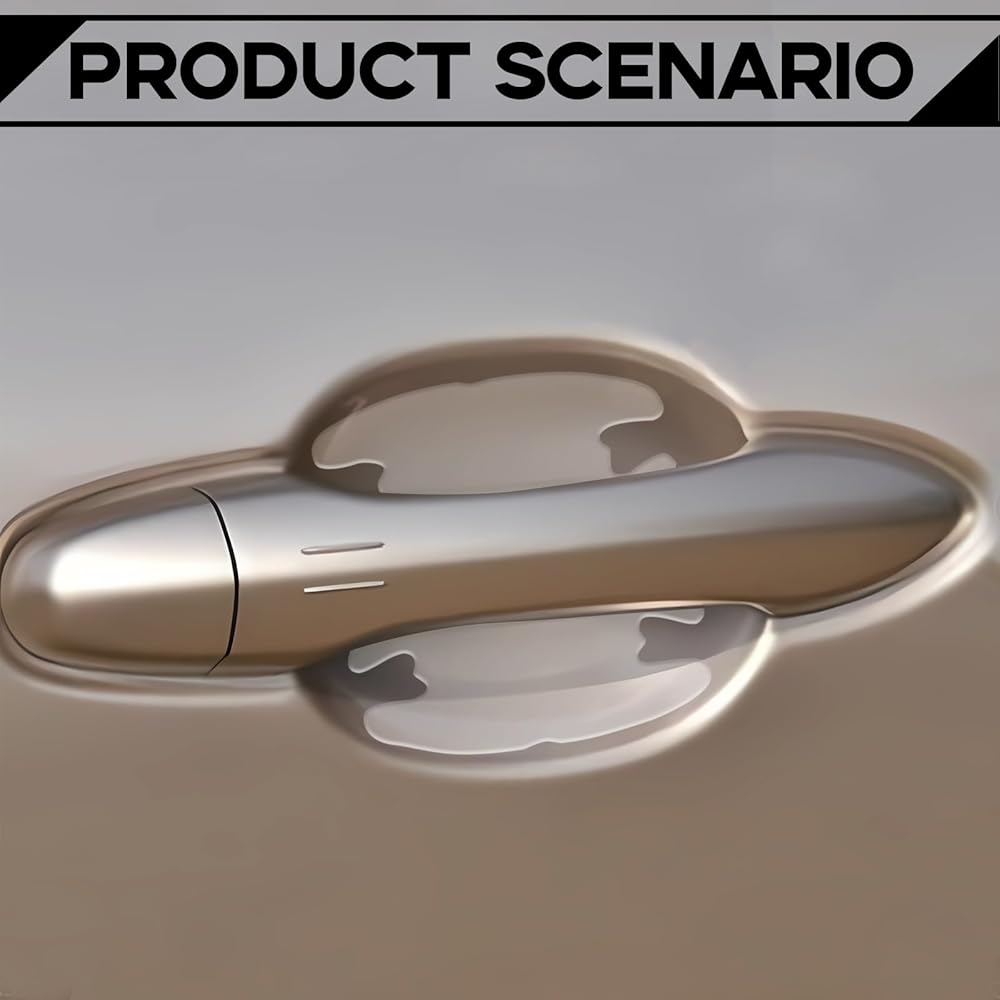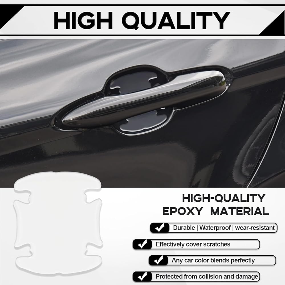 [Practical Effect]: Car door handle cup is prone to unsightly scratches caused by everyday items such as fingernails, rings or keys. The accumulation of these scratches can make your car appear dull and outdated. Super clear material with curved edge, can resist sharp objects to prevent scratch, add fashion and elegant to make your car sand out! Perfect integration with any color of car, providing protection while maintaining the original look