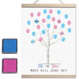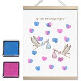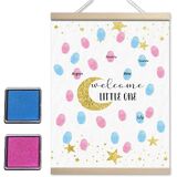 Product Details: This product is 15x12 inches in size, which is a perfect size to ensure enough space for fingerprint pressing, and comes with 2 different colors of ink pads to complete the gender reveal game