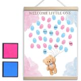 Gender Reveal Game:Discover our charming Canvas Hanging Painting for Gender Reveal Party ! This Winnie themed fingerprint keepsake is perfect for gender reveal parties. Create a unique family treasure with fingerprint art, whether it's a boy or girl. A beautiful and memorable gift idea for any celebration!