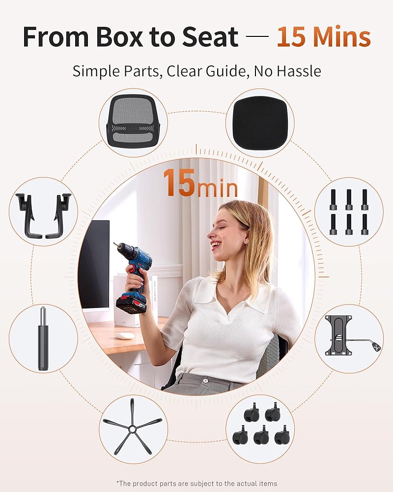 Quick Setup & Reliable Warranty: Assemble in 15 minutes with clear instructions and included tools. Backed by a 5-year factory warranty, 30-day free returns, and trusted by over 6 million satisfied users