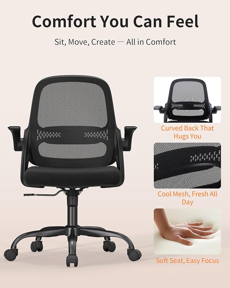 Breathable All-Day Comfort: Enjoy lasting comfort with a ventilated mesh back and a 3-inch high-density foam seat, reinforced by a coated steel base for reliable stability and support
