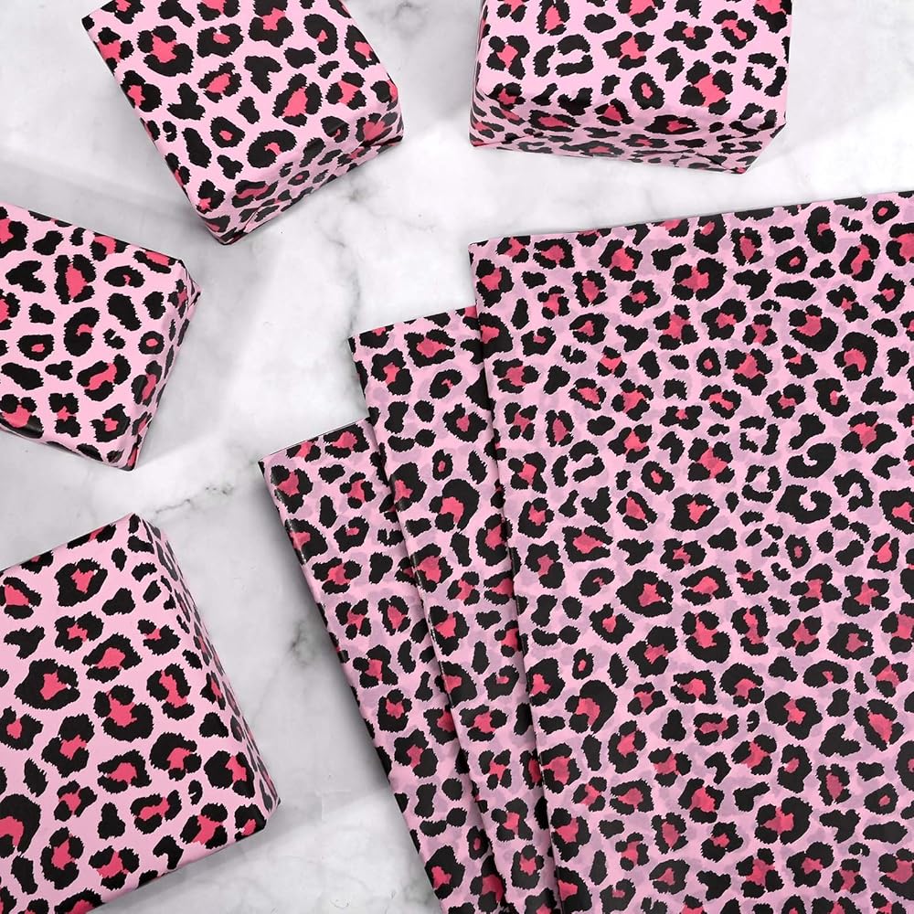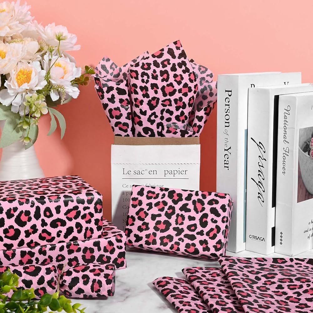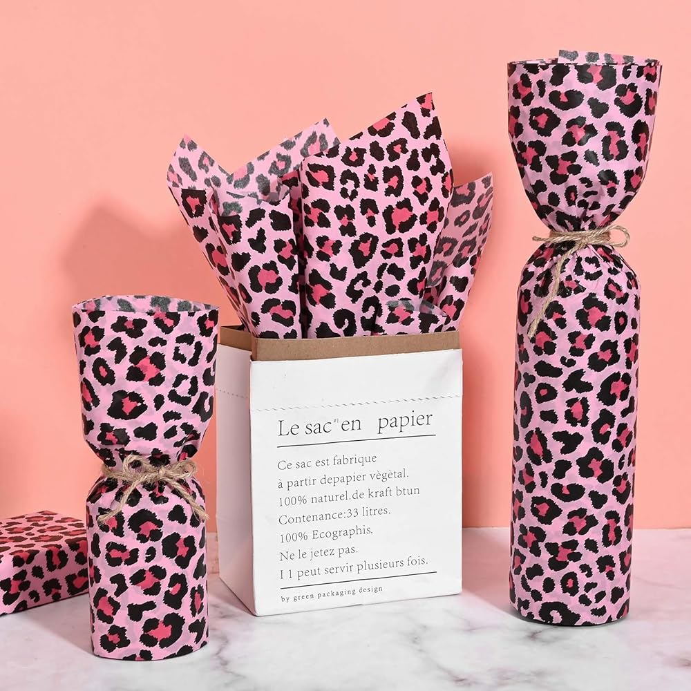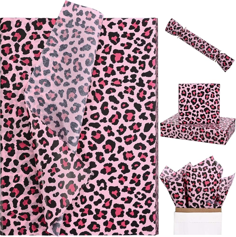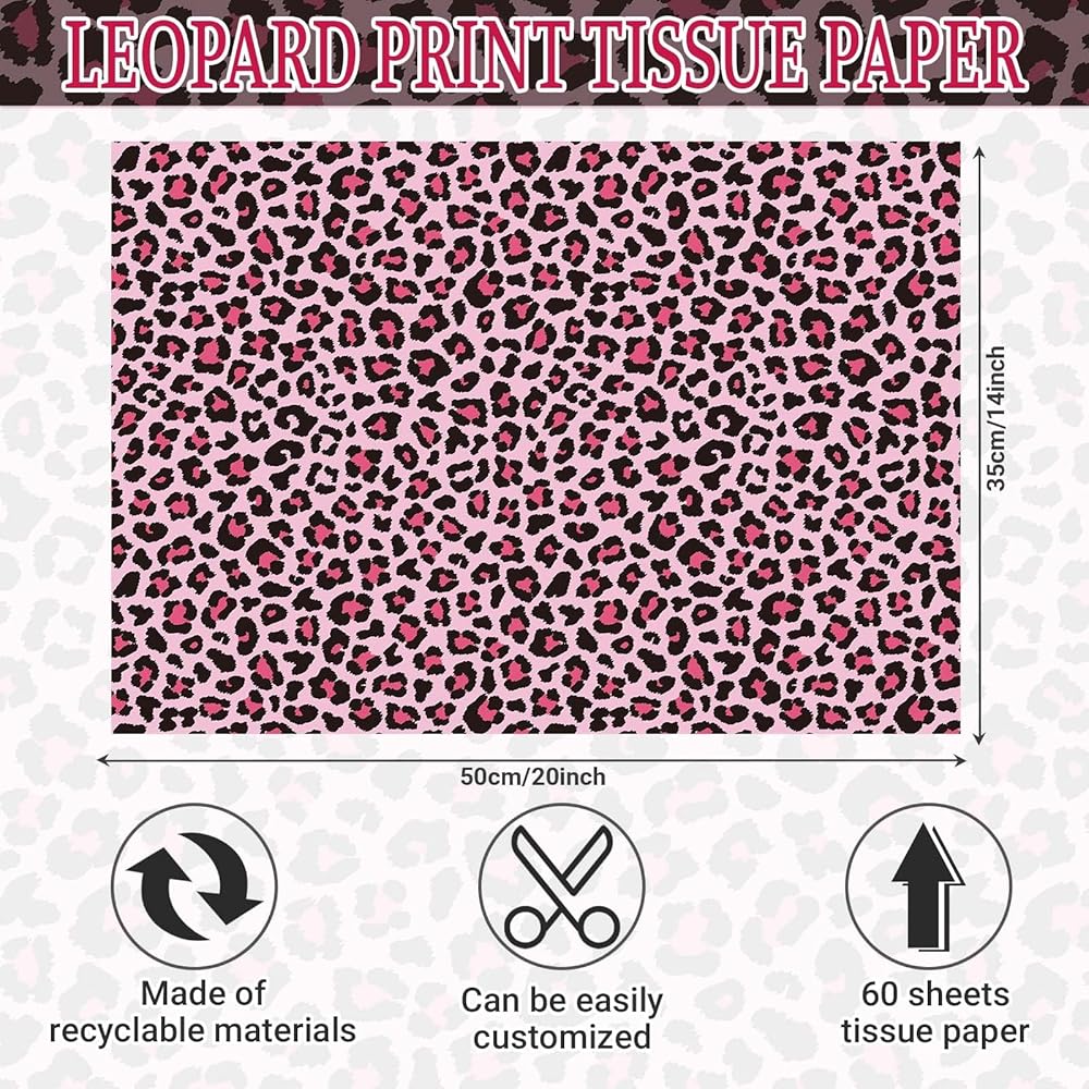Bolsome 60 Sheets Pink Leopard Tissue Paper for Gift Wrapping Animal Print Tissue Paper for Gift Bags for Valentine's Day Jungle Safari Party Bridal Shower DIY Crafts, 20 × 14 Inches