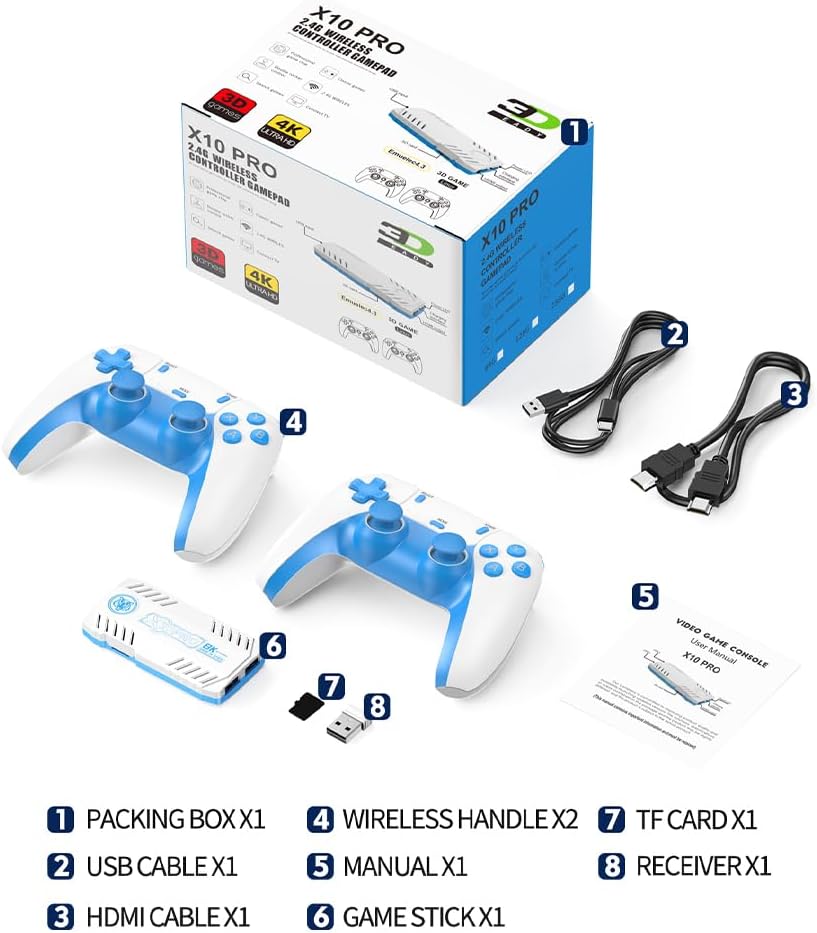 【Bulit in 50000+ Classic Games:】Mini video game console stick comes with a 128GB TF card, preinstalled 50000+ popular retro arcade games and many game emulators,And supports add new games, take you back to childhood.