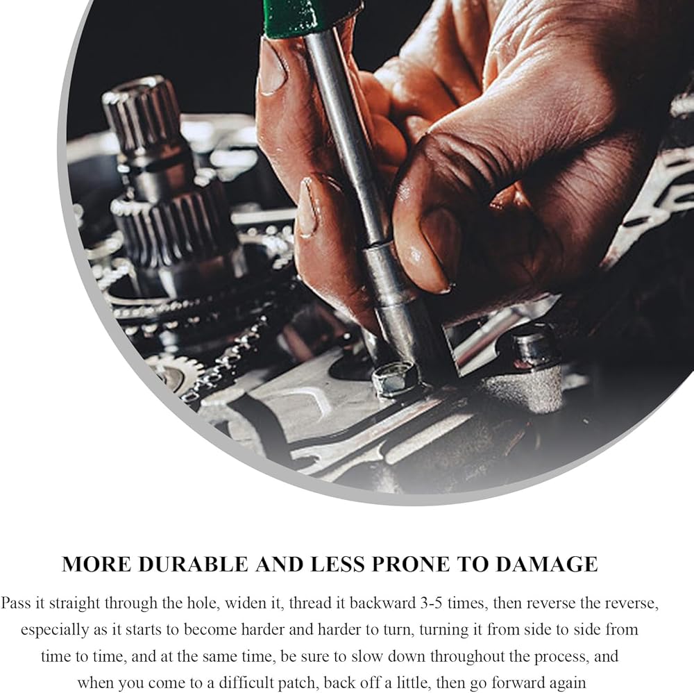 Durable Material: Made from high-quality steel, this spark plug thread repair tool boasts exceptional hardness and durability, ensuring it withstands repeated use without breaking. It also provides outstanding resistance to rust and corrosion, ensuring optimal performance over time