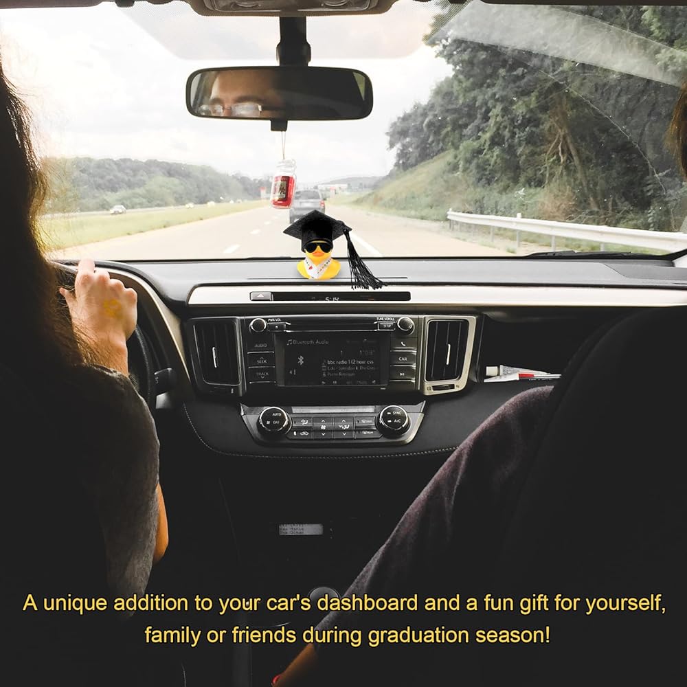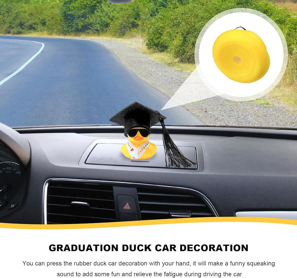 Creative Decoration: The ornament is based on the classic yellow duck and features a stylish twist with graduation-themed elements. The cute appearance can add vitality to the interior space of the car. Pressing the duck's body can also make a playful squeak, making the driving journey full of joy