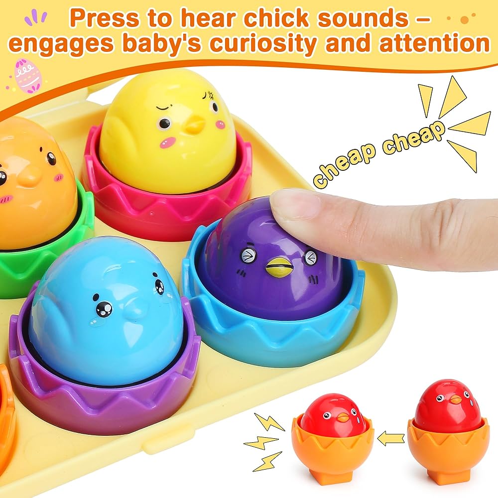 【Fun Learning Toy】: Watch their eyes light up with every satisfying squeak! The chirpy sound teaches cause-and-effect while encouraging repeat play. Easy-to-open (but secure) shells help develop fine motor skills as little fingers discover the colorful chicks inside. With 6 unique expressions to explore, this interactive toy grows with your child from simple pressing games to advanced emotion recognition activities. These educational toys make learning fun and engaging every day!