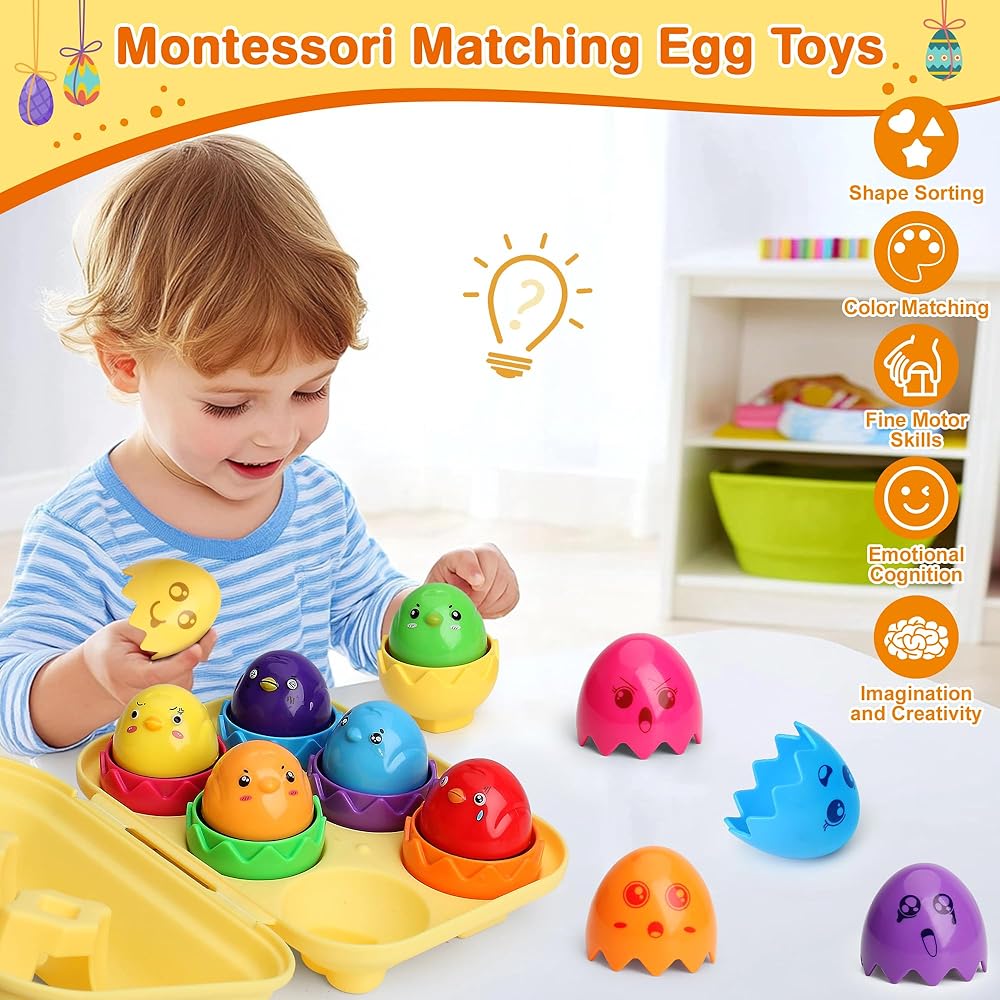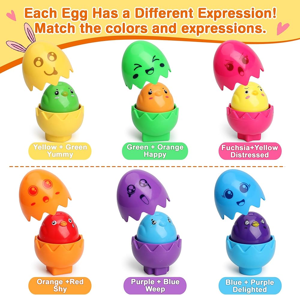 【Where Fun Meets Early Learning】: Say goodbye to boring single-purpose toys! MOONTOY Matching Eggs Set is a complete Fun Learning Toy and Montessori Easter Eggs Set that grows with your child. The realistic egg carton keeps all 6 eggs neatly stored while teaching organization skills. Made with certified BPA-free materials that meet strict safety standards, these matching egg toys are designed for early education and hands-on exploration. Each egg features different shapes, colors, and expressions, providing endless easter eggs matching toys that build cognitive foundations.