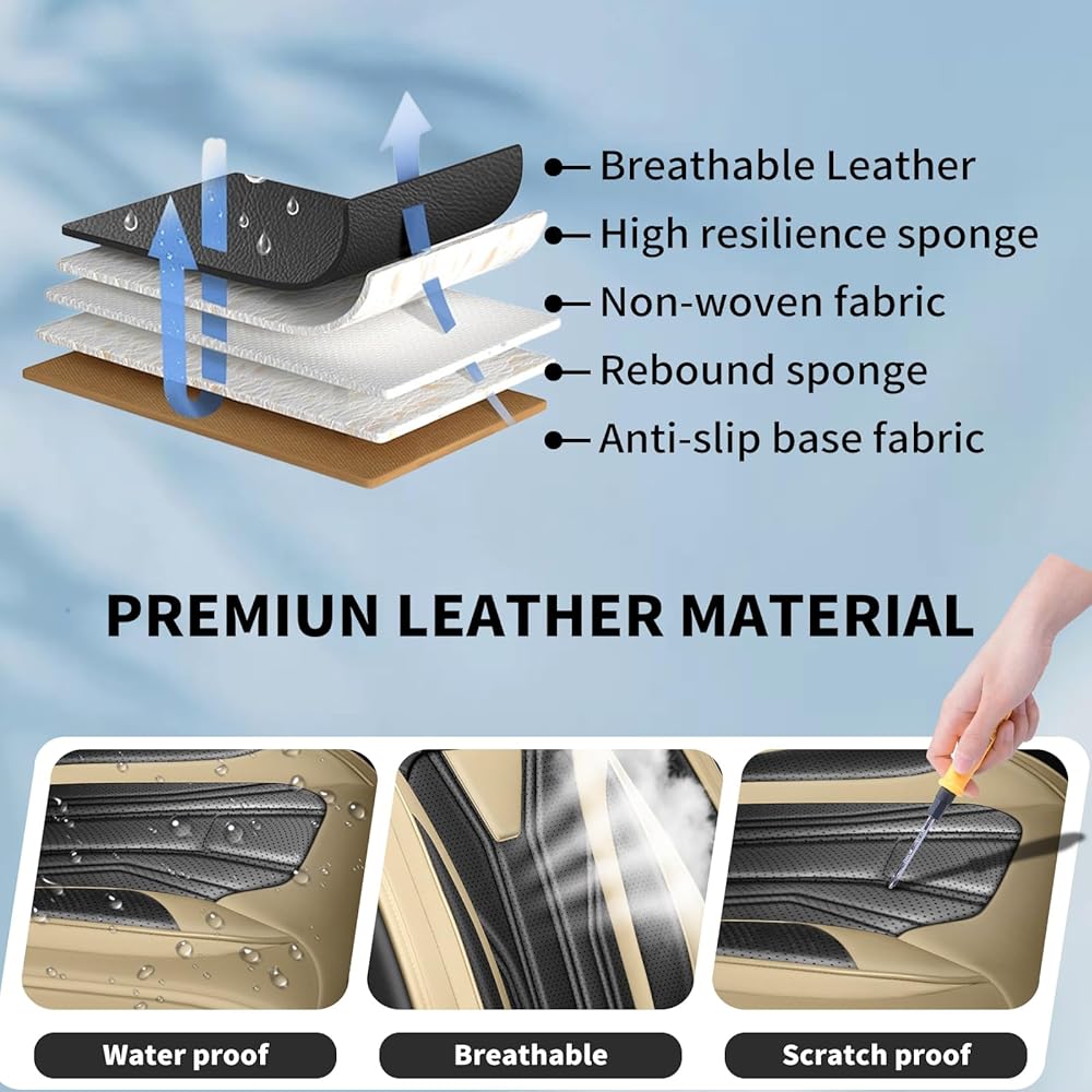 【PREMIUM MATERIAL】Our specific seat covers are crafted from premium faux leather, And the sides are made of stretch cloth, Which is elastic and 360° protects the seat from wear and tear. Making them perfect for all weather conditions and ensuring your seats remain like-new for years