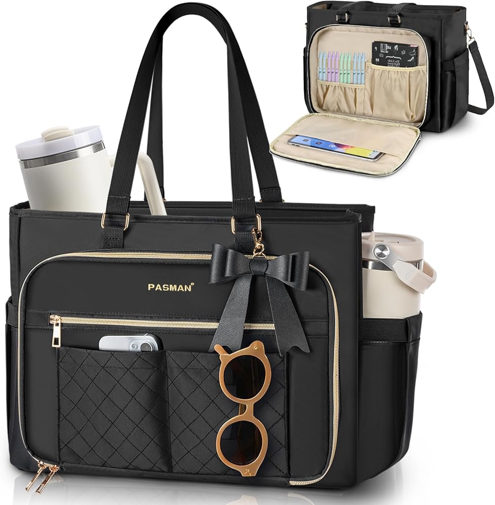 All-in-One Organization :This teacher tote bag for women features multiple interior and exterior pockets to organize lesson plans, folders, notebooks, planners, pens, and daily work essentials for school and office use
