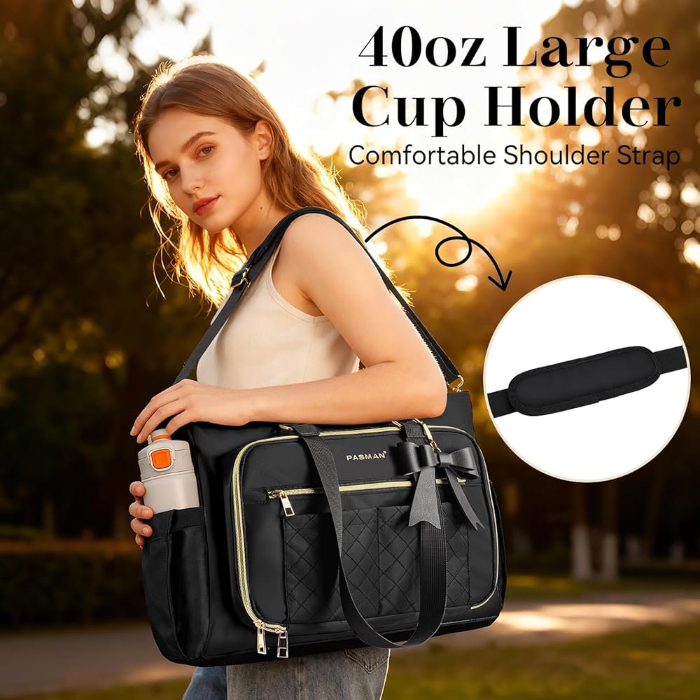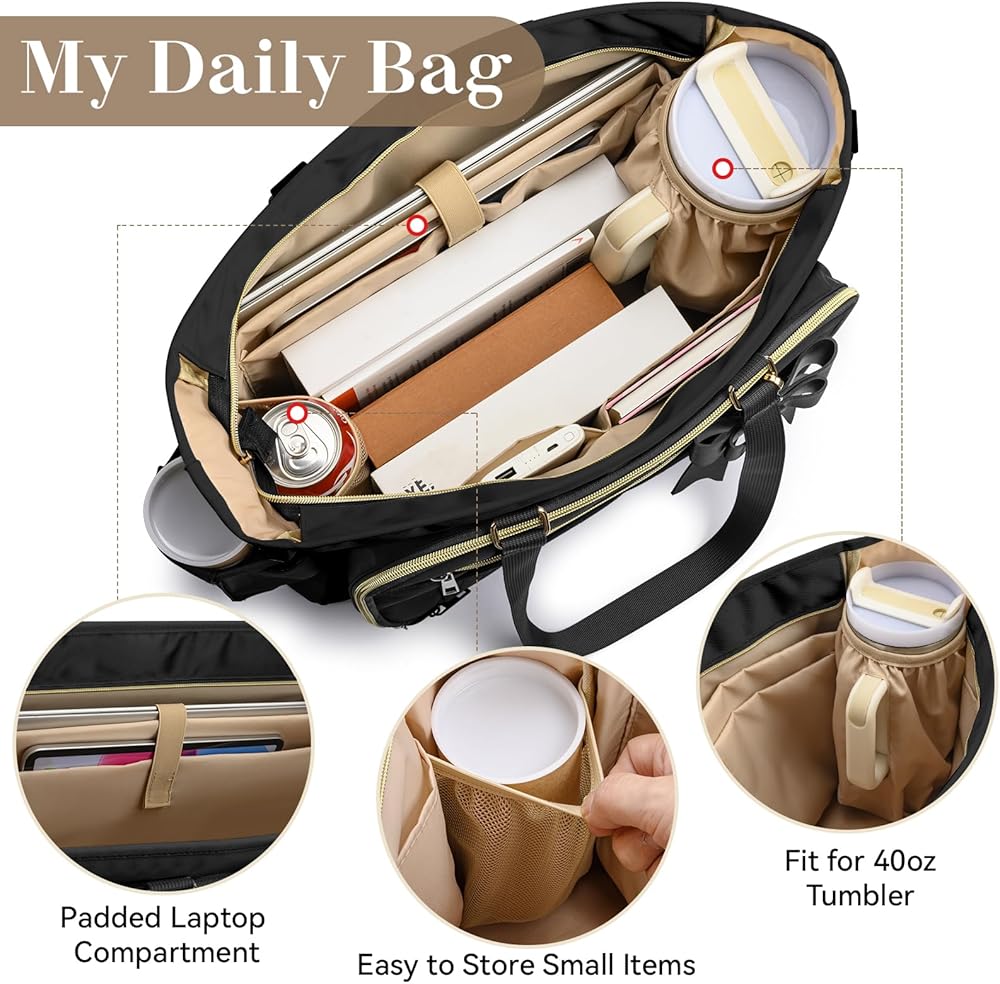 Laptop & Tablet Protection: fits laptops up to 15.6 inches, with additional space for a tablet, mouse, charger, power cord, headphones, and tech accessories—ideal as a laptop work bag for women
