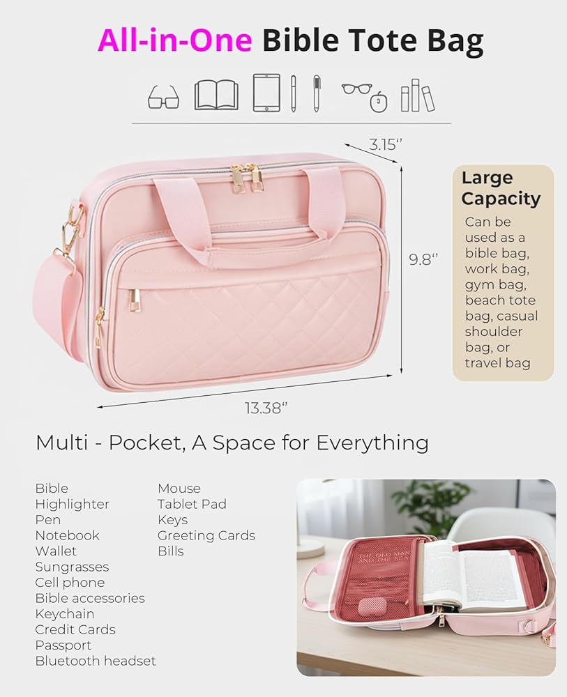 Versatile Carryall – Transition seamlessly from church services to work or travel with this multi-functional tote. Can be used as a bible bag, work bag, laptop bag, gym bag, beach tote bag, casual shoulder bag, or travel bag. Suitable for work, beach, travel, shopping, gym and more occasion