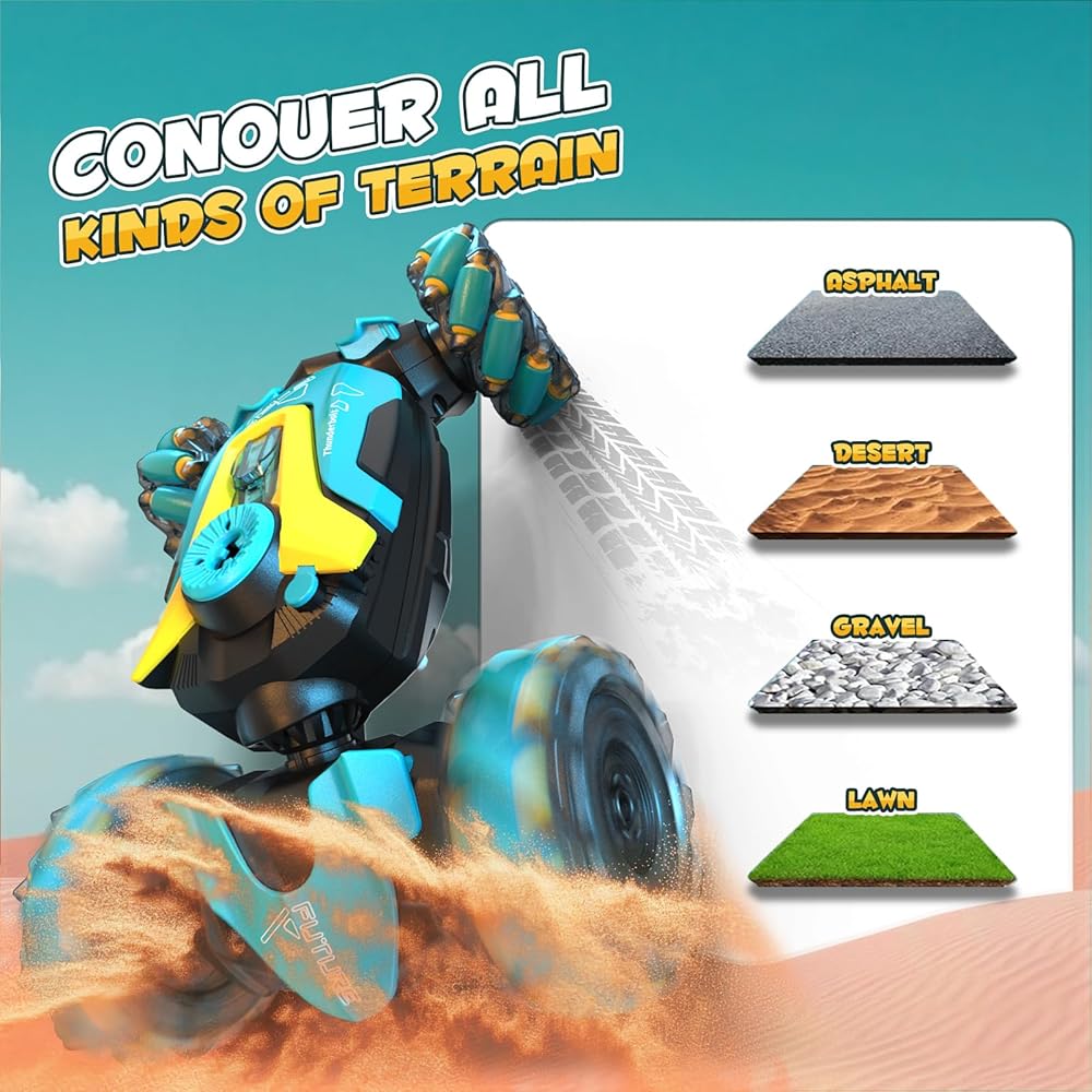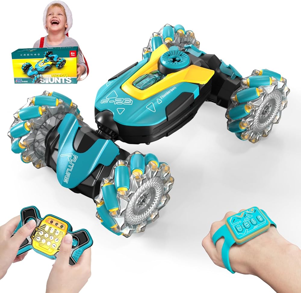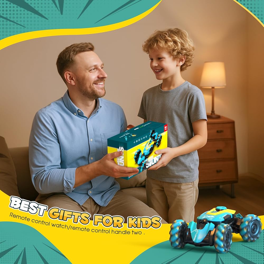 🚗 【Fantistic Stunt Car】- The kid's stunt car adopts 2.4GHz remote control system, for long control distance over 80m. Features of climbing, twisting, moving forward & backward, automatic demonstration 360 degrees rotation, 6 driving force, watch & gesture sensing remote control,drift.
