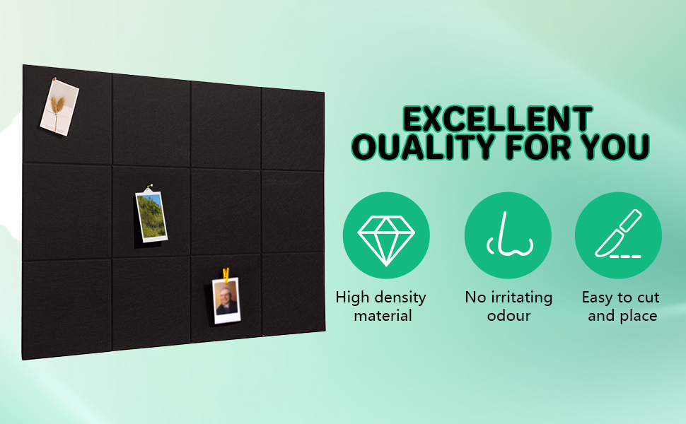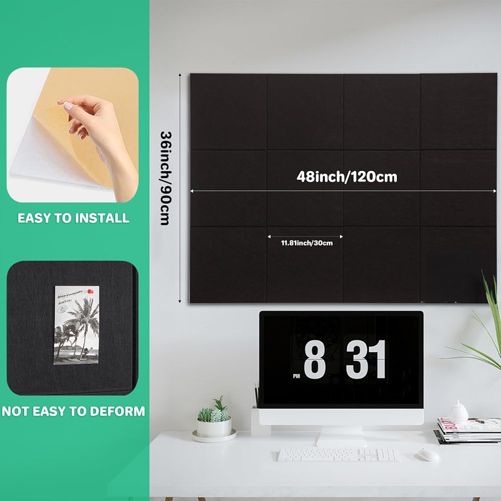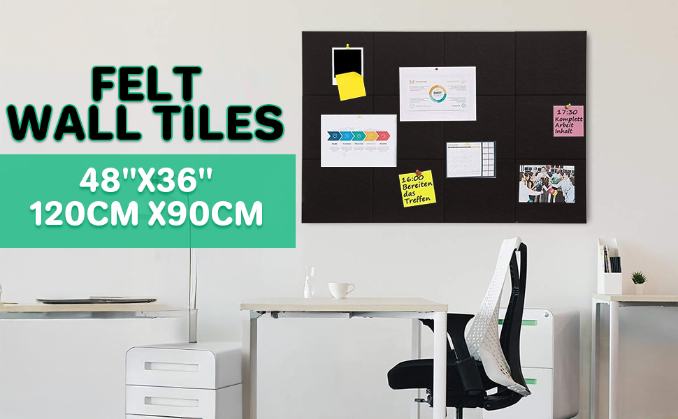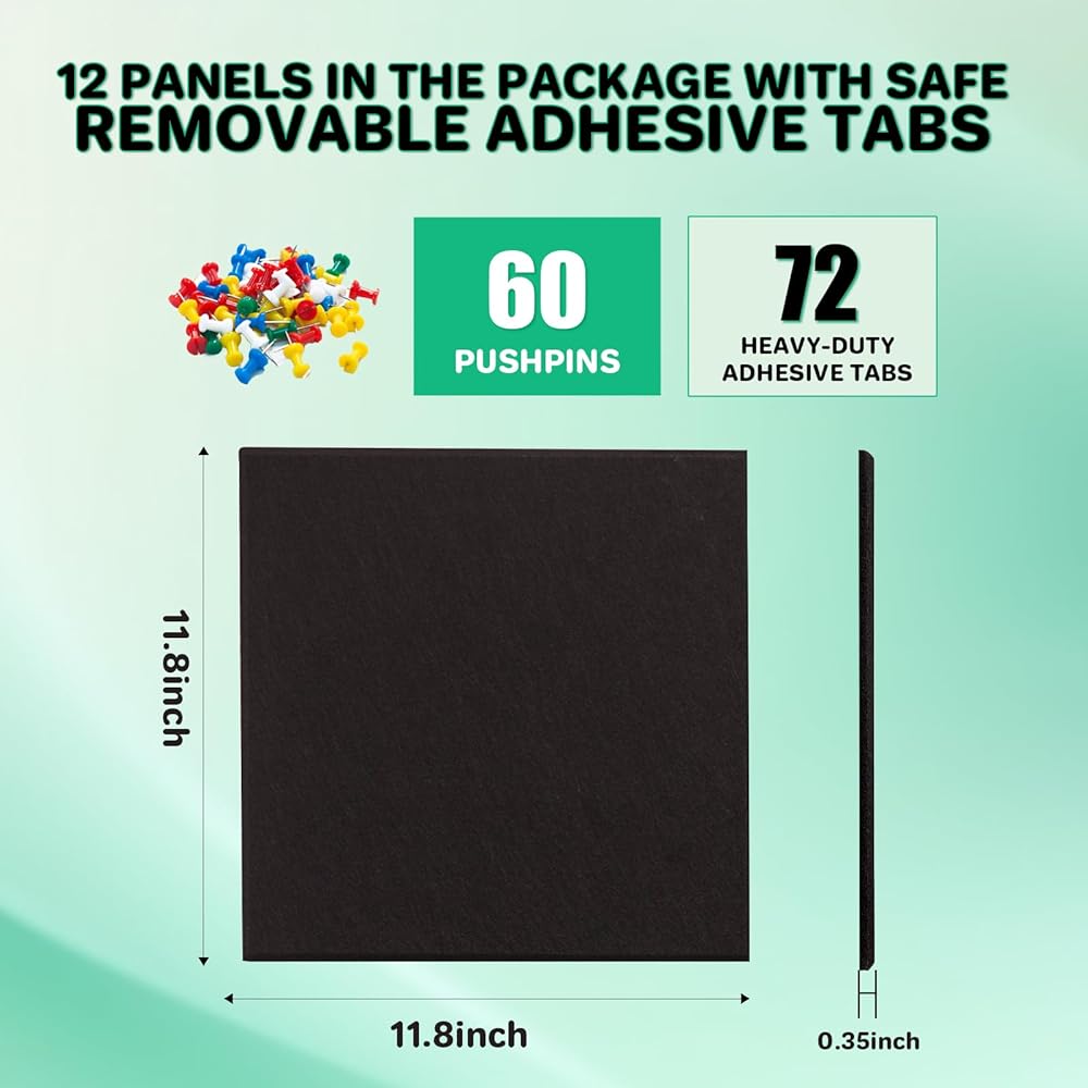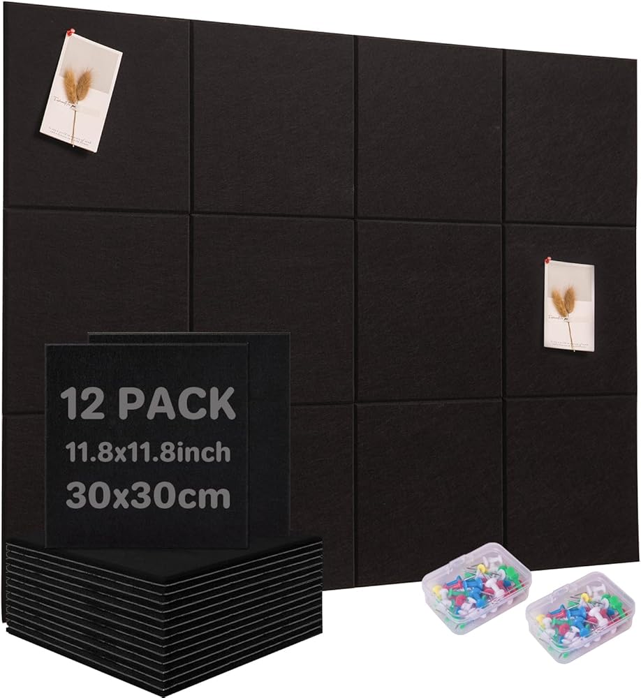 【12pack Small Tiles for Flexible Designs】Each panel measures 11.8" x 11.8", 12 pack 0.35" thick high-density felt panels easy to customize to any size you need.Effortlessly arrange them into any size or shape bulletin board on your office, home, or classroom wall to organize schedules, ideas, photos, and notes.