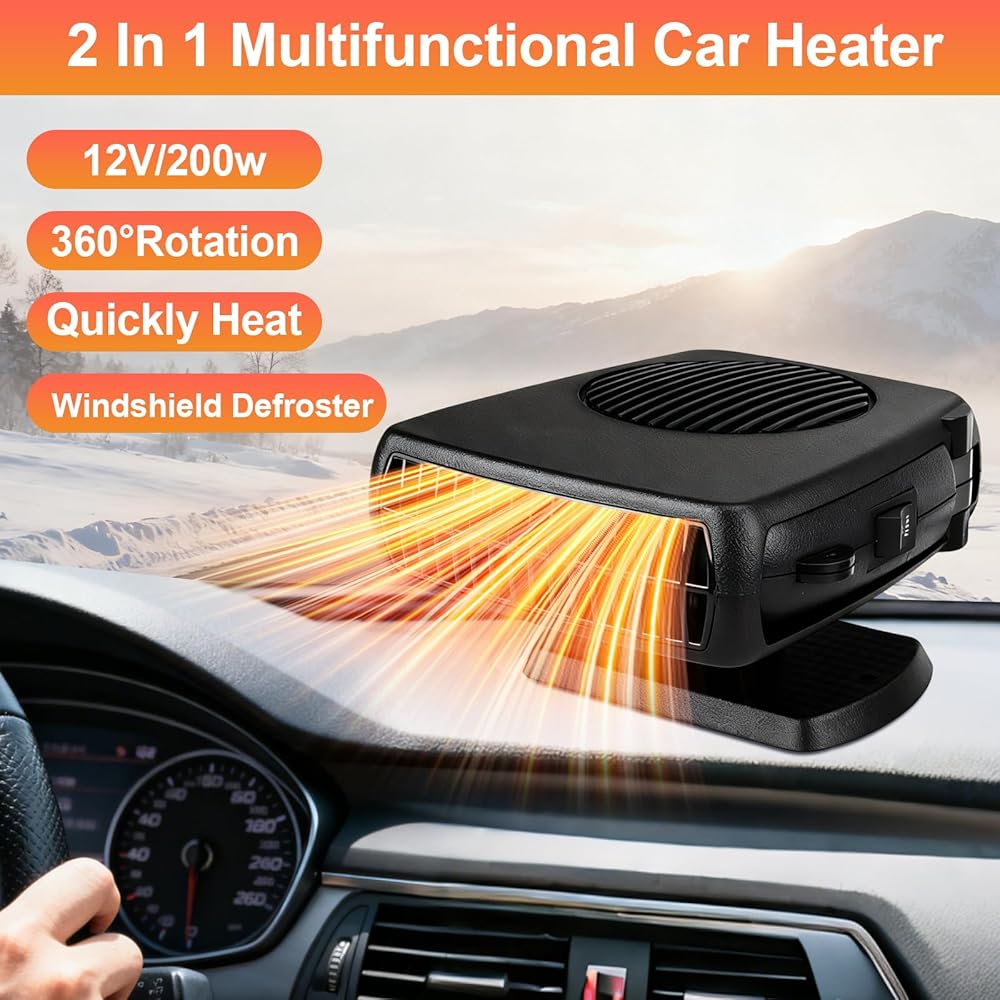 【2 in 1 Car Heater】This Fast Heating & Cooling Fan can heat or cool allowing you to feel the heat on a cold day and the breeze on a hot, sunny day. Can be used to purified air, warm air, solving fog and frost coverage problems on the windshield of car.