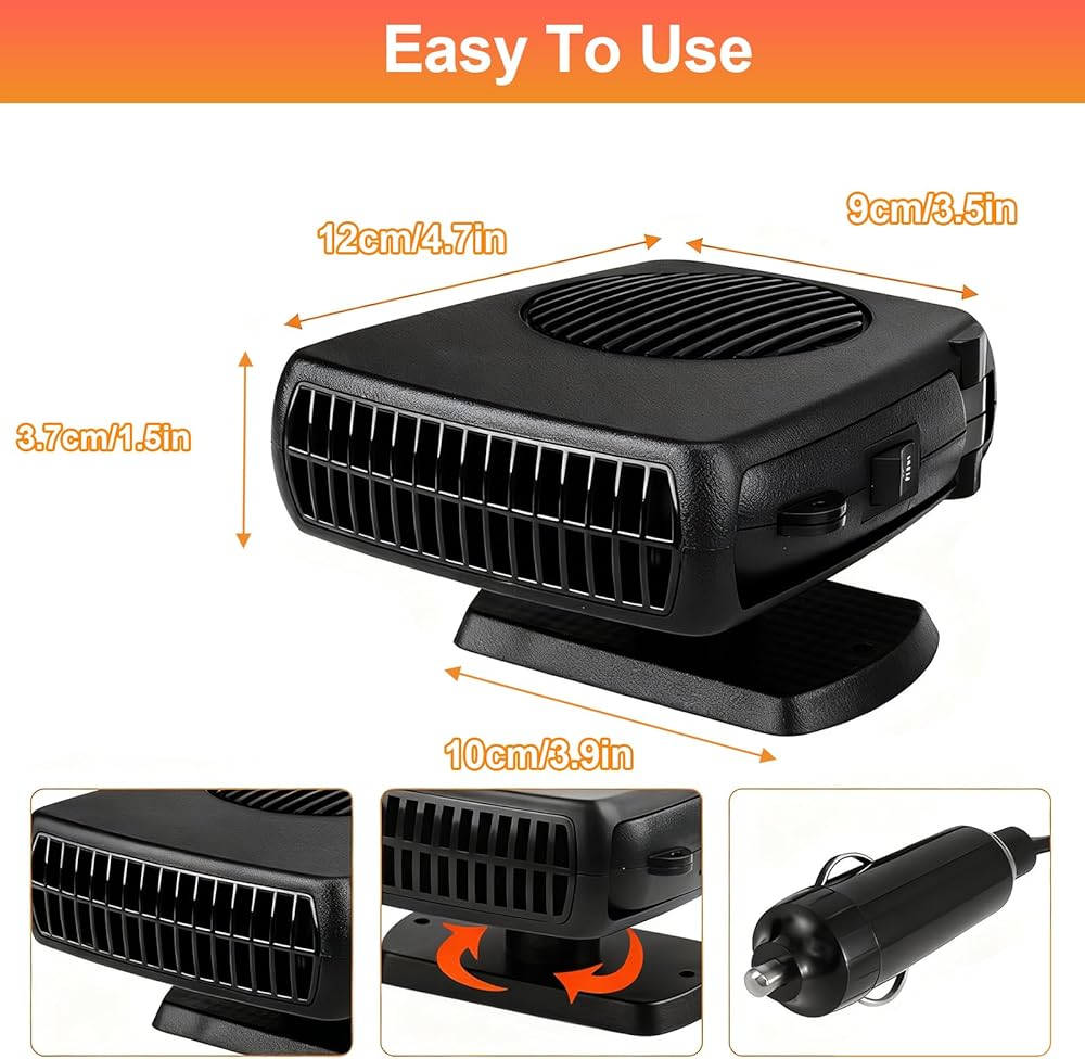 【Durable Windshield Defroster】The car heater is made of ABS, so the heater is not easily damaged. The thicker copper long cable will not heat up during use and will not damage your car battery. With its excellent design and high quality cable, there is no weak link.