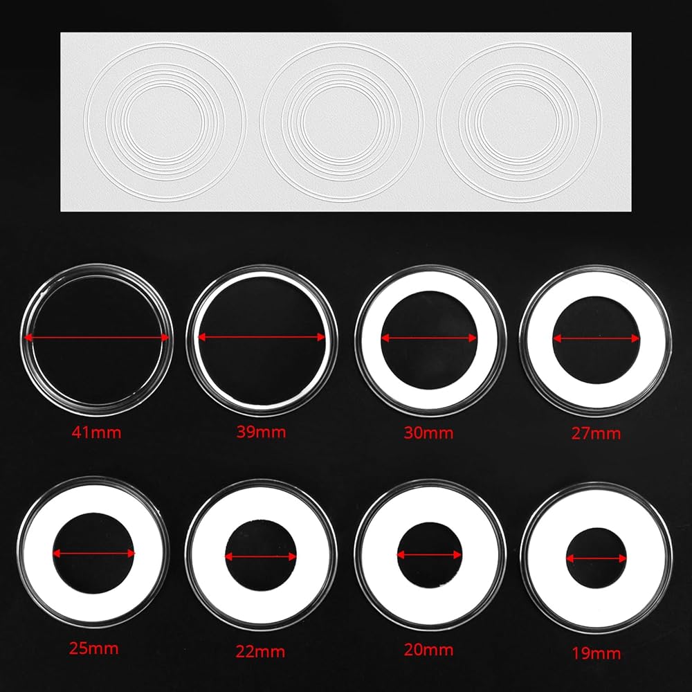 Versatile Compatibility: Perfectly fit a variety of coins, including US Quarters, caps, tokens, medallions, and badges with gaskets available in eight sizes (18/20/22/25/27/30/38/41 mm).
