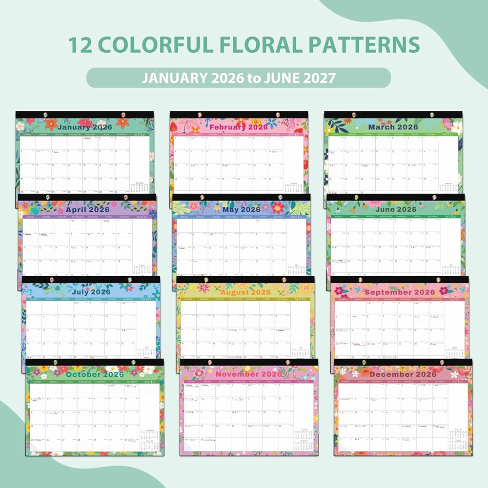 [2026-2027 DESK CALENDAR] - This 2026 desk calendar runs from January 2026 all the way to June 2027. It marks holidays and Julian dates to keep your schedule on track.Every month comes with two reference calendars let you quickly check past and future dates.