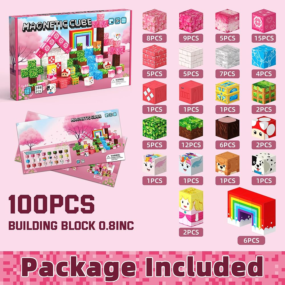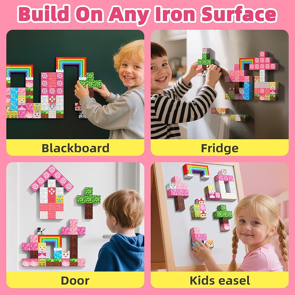 Magnetic Blocks with Imaginative Pixelated Design: This popular style captures girls' interest instantly, sparking creativity and keeping children engaged in playful exploration. As they build, kids can exercise storytelling skills while enjoying the fun of these Magnetic Blocks—combining sensory play with endless imaginative possibilities.