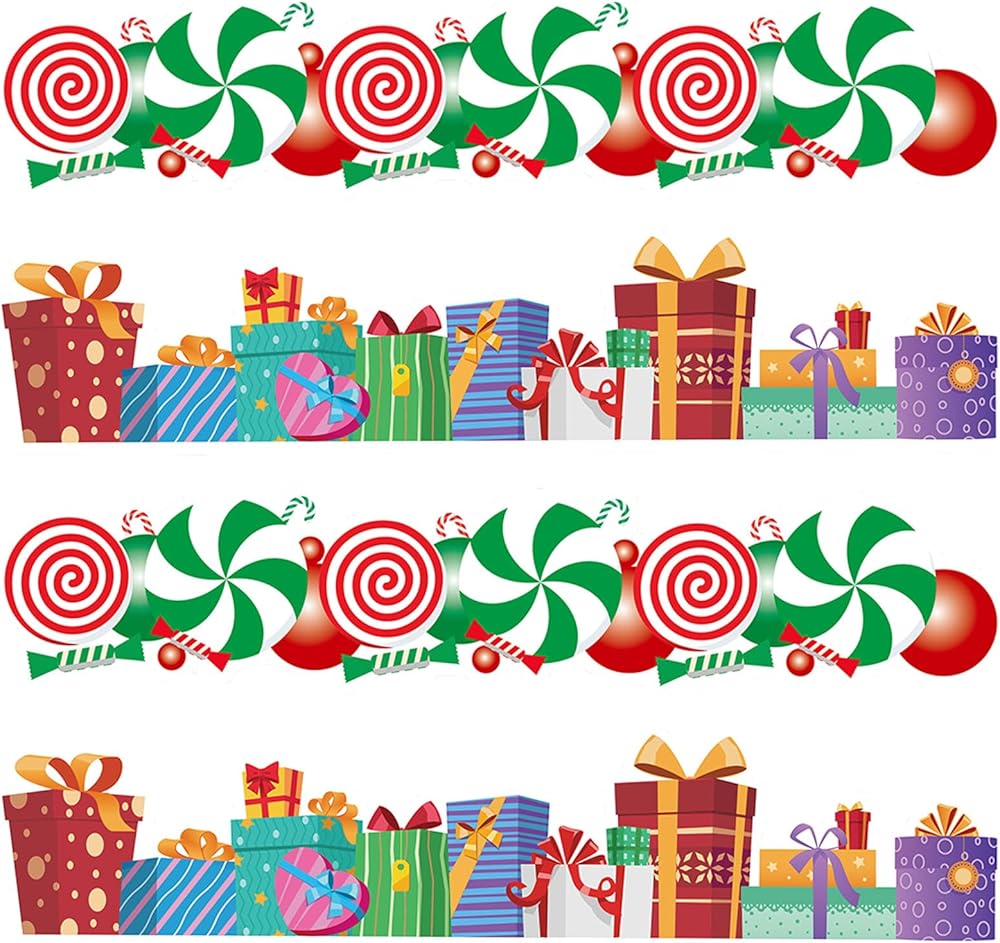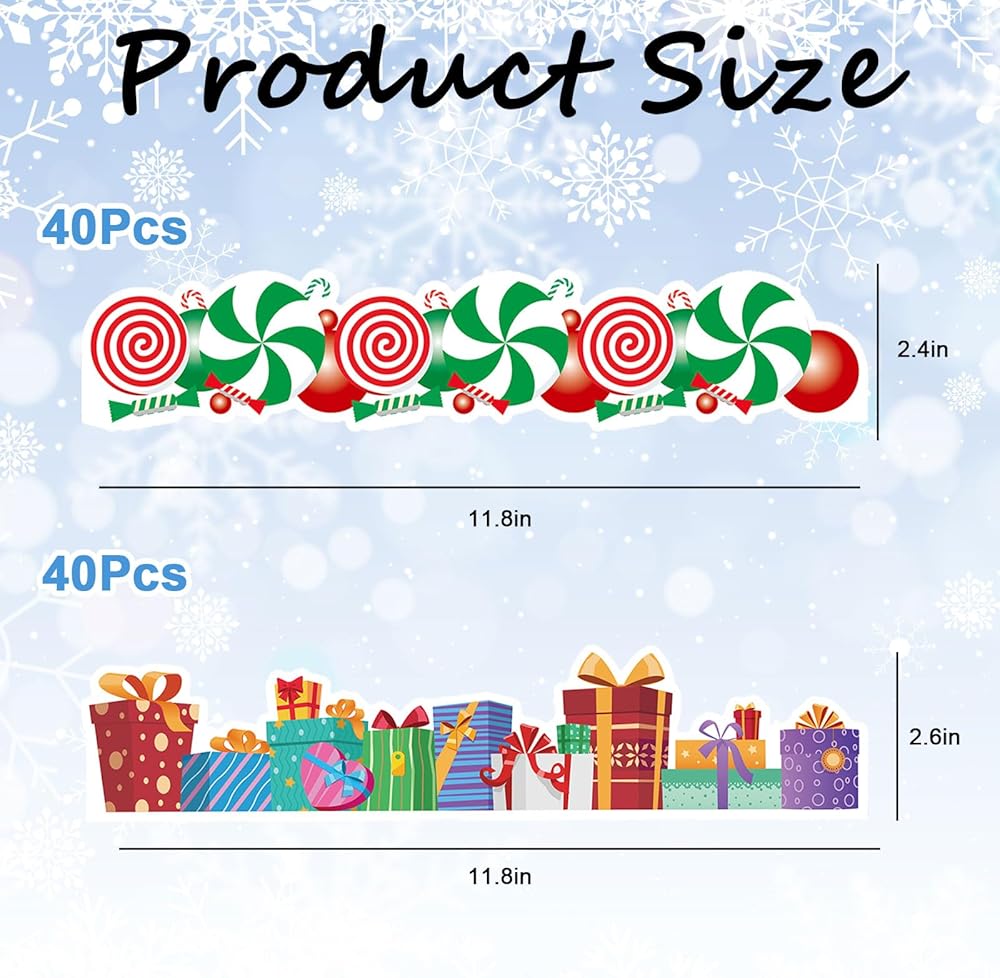 80PCS Christmas Bulletin Board Border,Gift Box Candy Trim Border Winter Bulletin Board Border for School Classroom Blackboard Office Home Christmas Party Supplies White Elephant Gifts