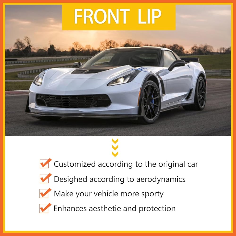 Front Lip Compatibility with 2014-2019 Corvette C7 Z06 Stage 3 Front Bumper Chin Diffuser Lip Spoiler Splitter Air Dam with Side Winglets 4PCS Gloss Black